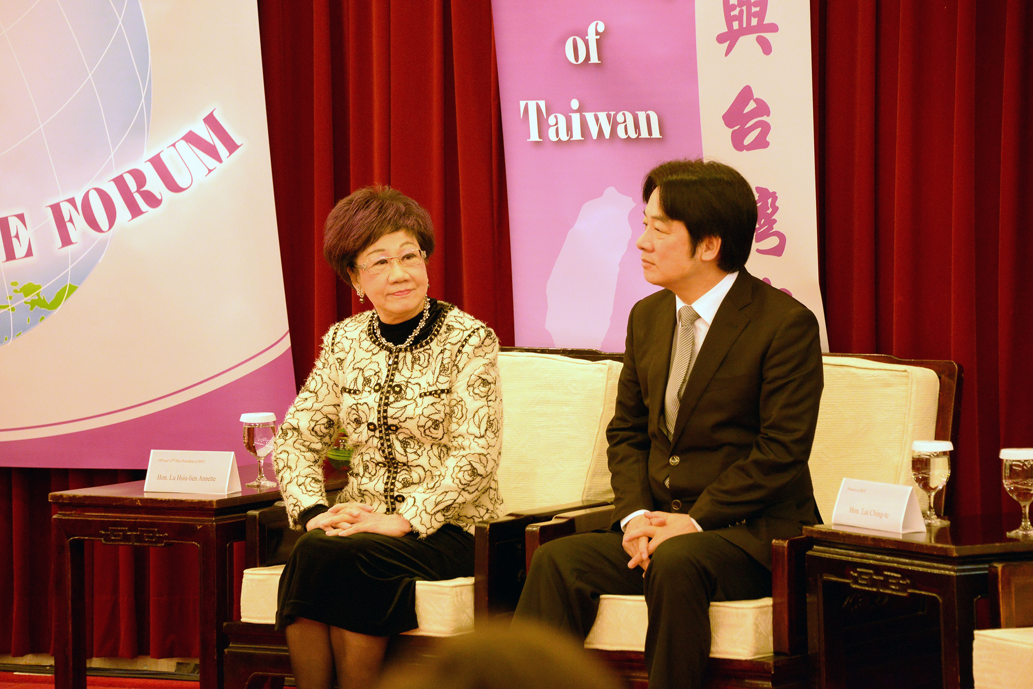 此外,賴院長向呂前副總統表達最高的敬意,感謝她不僅在任內積極爭取台灣的國際空間,卸任後於國際持續奔走,為台灣發聲、倡議東亞和平。同時,感謝共同主辦的韓國、瑞士,以及來自世界各國的國會議員、政府官員及學者等貴賓,希望藉此論壇,就各國在區域內受到的安全挑戰以及經濟發展深入對談,為未來的東亞和平注入穩定力量,也盼此平台成為未來穩定東亞和平的重要場域。