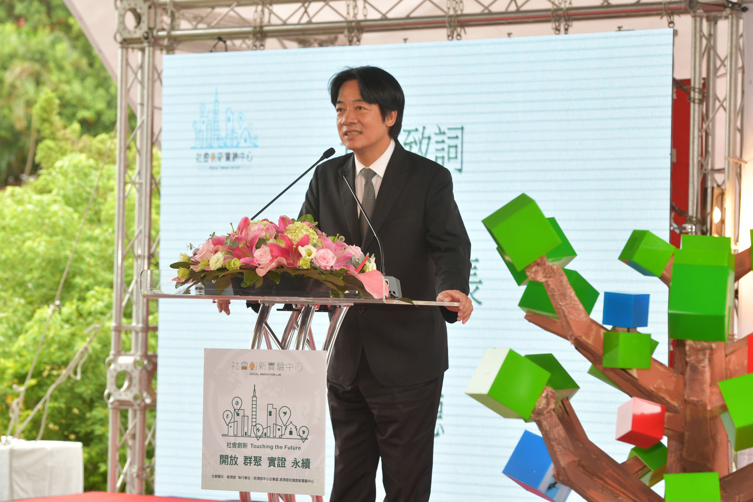 行政院長賴清德今(18)日出席社會創新實驗中心開幕儀式時表示,此中心的開幕展現政府為與「經濟合作暨發展組織」(OECD)國家接軌,以社會企業解決社會問題的態度,同時也顯示台灣在永續發展創新經濟模式的決心,希望落實蔡英文總統的新經濟發展策略,不僅是創業,也讓就業達到分配的核心價值。