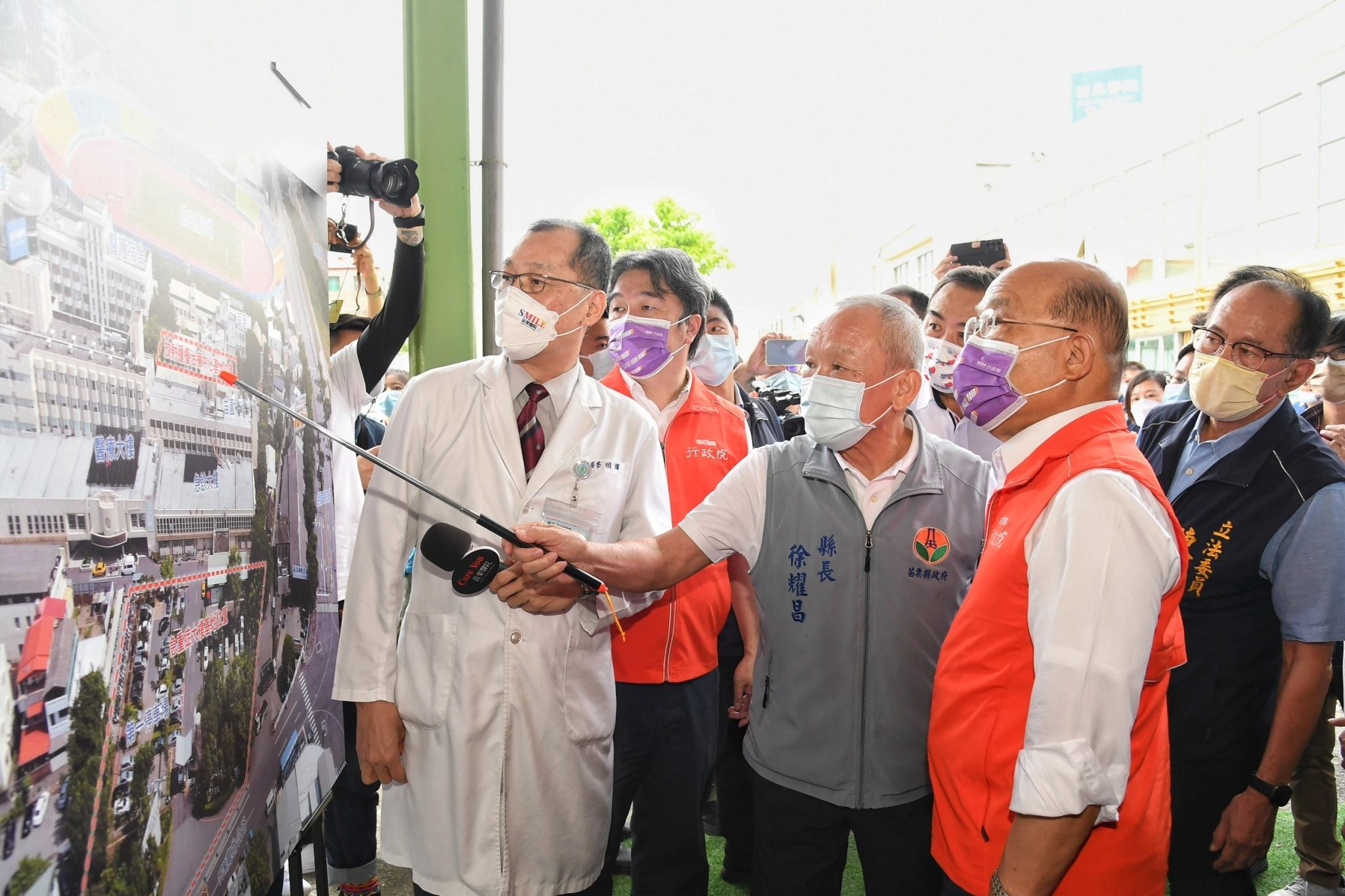 行政院長蘇貞昌今(23)日視察衛生福利部苗栗醫院急重症醫療大樓及放射腫瘤治療中心擴建工程時,肯定及感謝所有醫護同仁在COVID-19疫情期間盡心盡力防疫、守護縣民健康。院長強調,他相當重視地方醫療建設,此次再任行政院長後,已於全國各地新建及擴建17項醫療工程,而為讓苗栗鄉親儘早獲得更完善的醫療照顧,此次視察的兩項擴建案工程,都由中央補助其經費,希望工程能儘速完成,且相關動線設計及醫療設備均應一次到位。院長表示,他向來大力支持苗栗地方建設,只要中央地方共同合作、不分彼此,相信地方建設將能做到最好。