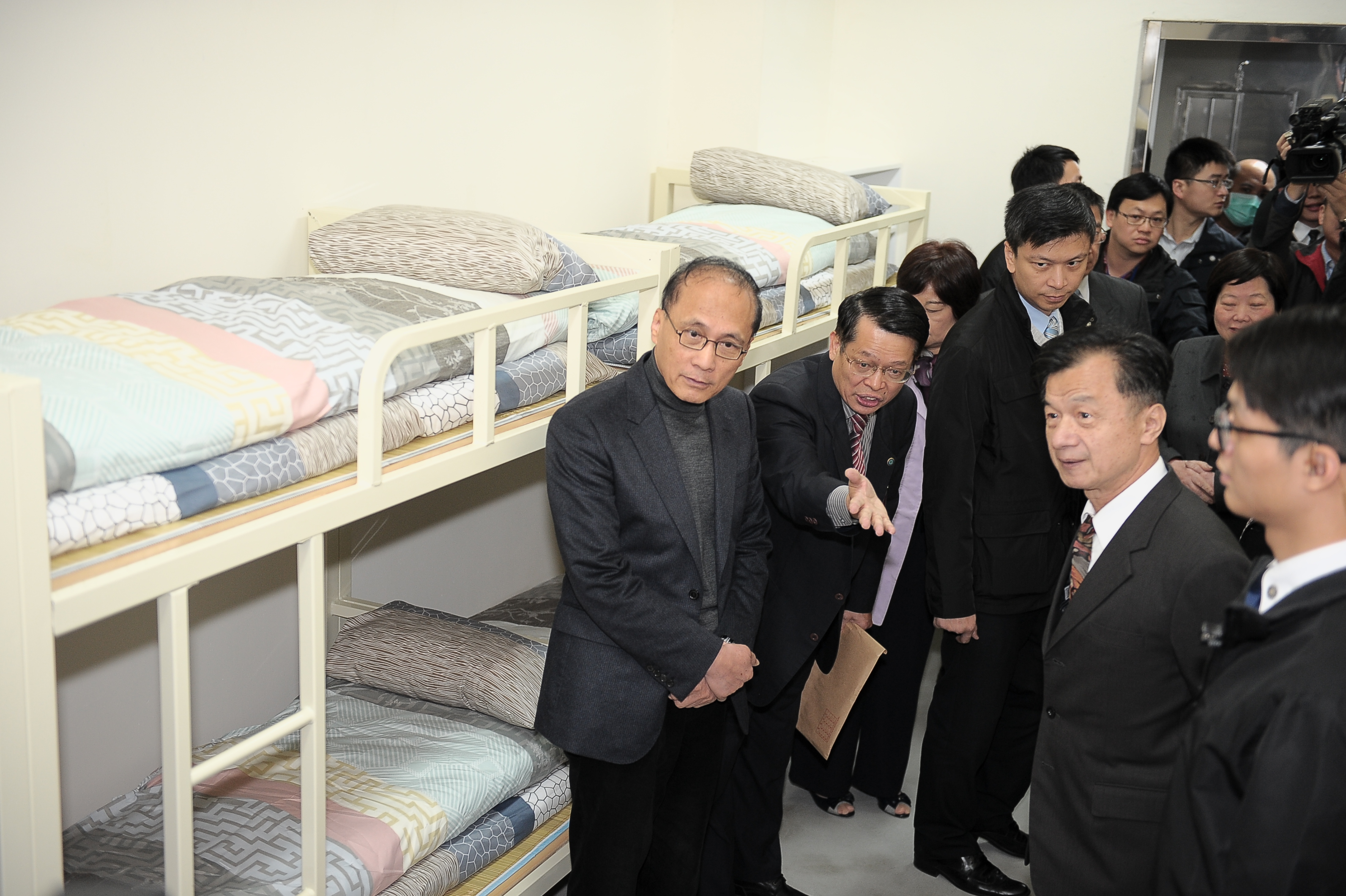 此次行程,林院長除訪視新(擴)建工程「至善大樓」,亦特別巡視舍房,關心「一人一床」及作業工場的預擬設置情形,並訪視印刷工場、陶藝技訓班、縫紉工場及烘焙技訓班,瞭解收容人習藝情形,同時慰勞台北監獄同仁推動技能訓練的用心。