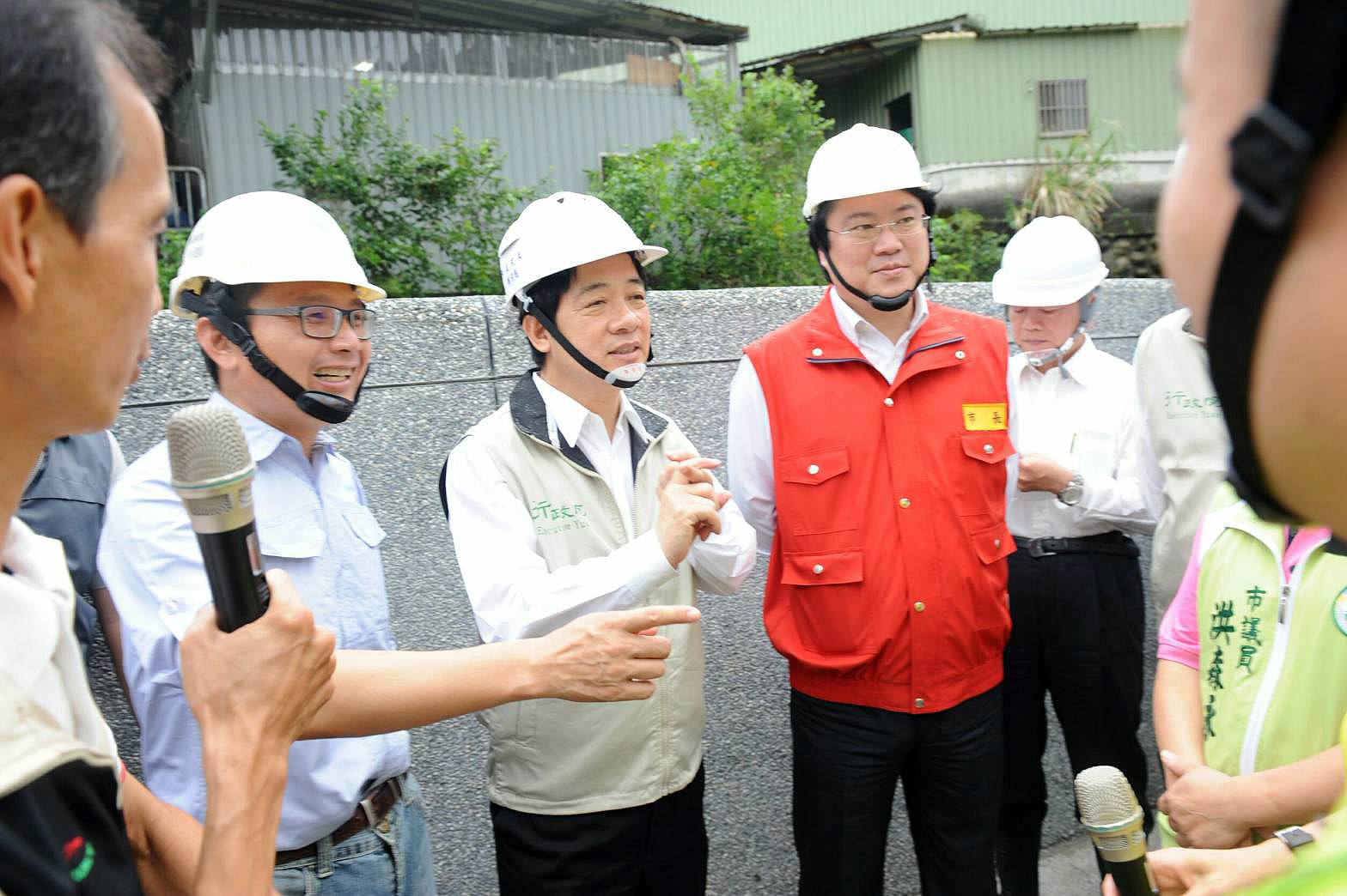 關心基隆大武崙溪整治情形,行政院長賴清德今(13)日視察時表示,目前治水預算已在立法院不分黨派的立委支持下通過,後續中期到長期的經費,總共約15億。重大工程除了經費外,就是市長的決心、水利署的專業和地方同心打拼。感謝基隆市長林右昌的認真努力,加上地方議員與里長的關心,希望地方和中央攜手共同合作,使未來治水工作圓滿成功。
