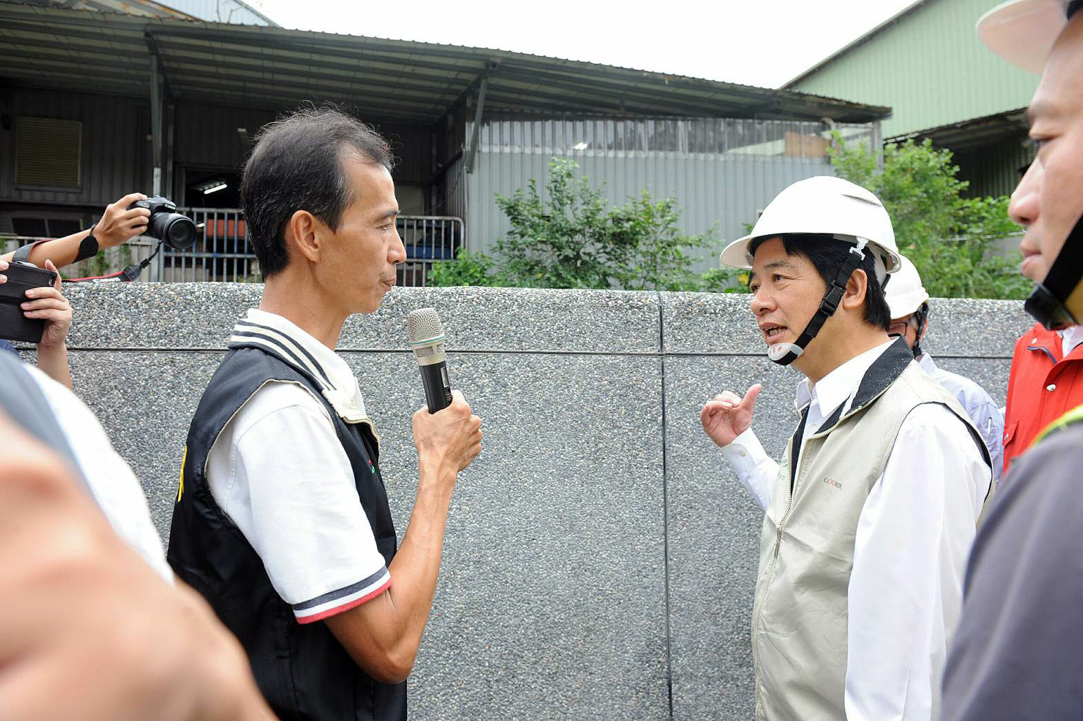 賴院長表示,過去台南市曾為全國最易淹水的地方,他以擔任6、7年台南市長,久病成良醫的經驗來看,認為水利署提出的綜合型治水計畫是有效的,不論是堤防加高、河川疏濬、滯洪池建置或是截流,皆根據地方特性以不同的方法治水。