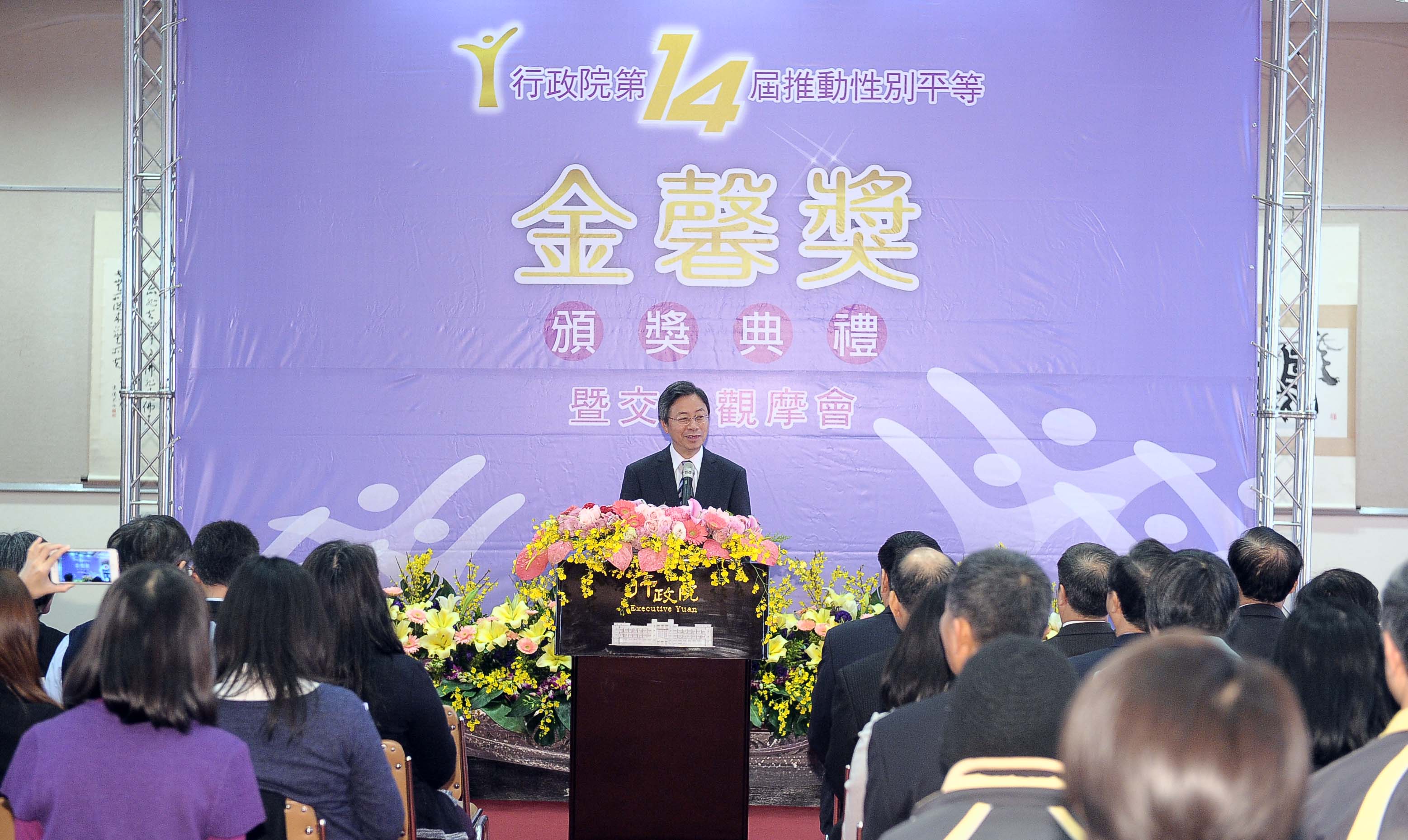 張院長指出,「金馨獎」原以拔擢女性擔任主管,以及推動性別主流化的工作為宗旨,已由行政院人事行政總處承辦13屆,績效卓著且備受肯定。為使性別平等業務推動能更周延,自104年開始,由行政院性別平等處接續辦理,增加輔導考核項目,以督促各部會以全面及創新的作法,推動性別平等工作。