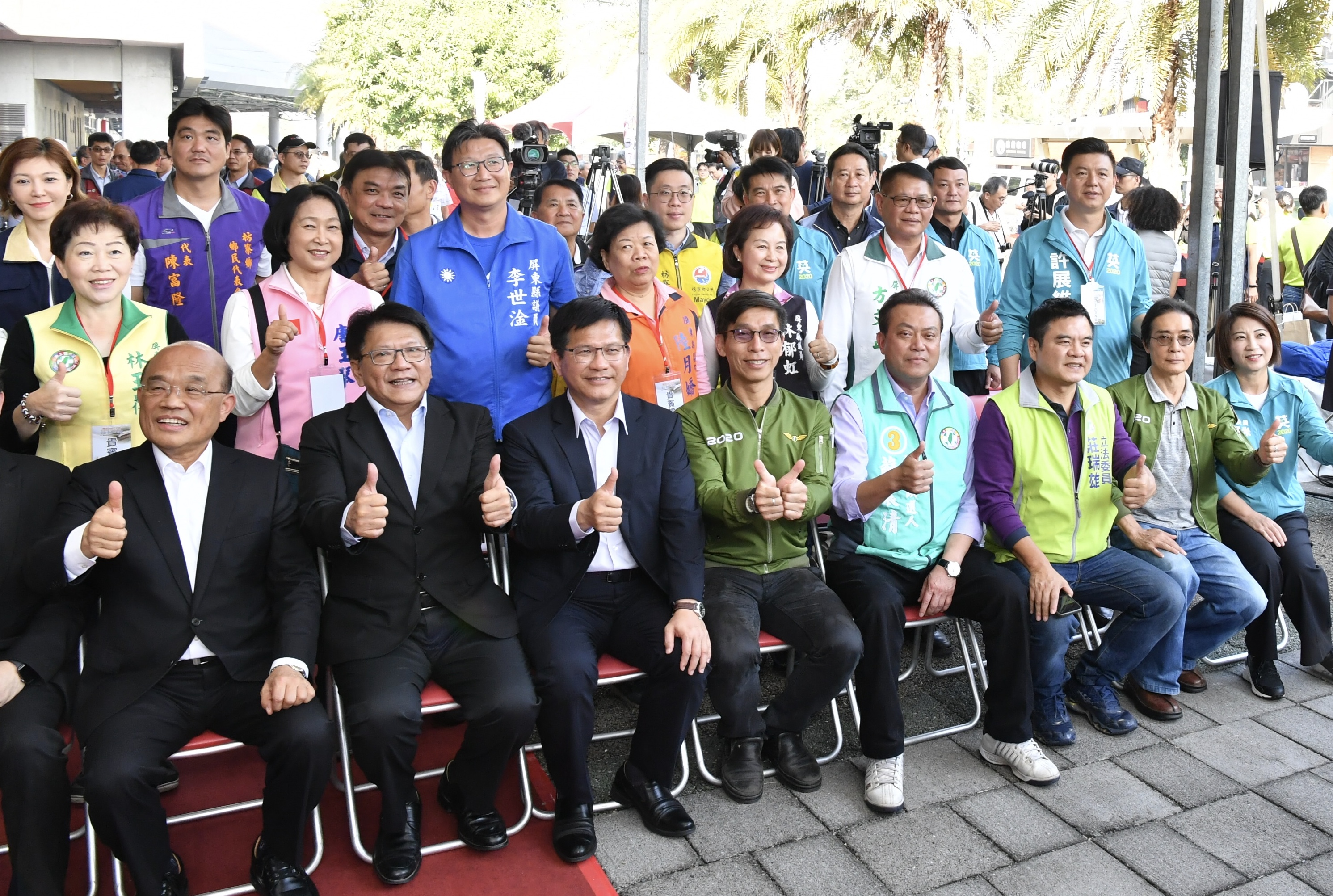 行政院長蘇貞昌今(23)日由屏東枋寮搭乘火車至潮州,體驗南迴鐵路潮州至枋寮段電氣化通車,並出席「南迴鐵路潮州至枋寮段電氣化工程通車啟用典禮」。蘇院長表示,今日他一早出席南迴公路拓寬改善工程全線通車,從台東親自開吉普車到屏東,接著則是從枋寮搭火車到潮州,體驗電氣化通車,為的都是要向第一線施工團隊及基層人員致上最高敬意與感謝。也期許枋寮到台東段鐵路電氣化能早日通車,讓環島公路與鐵路網發揮最大效益。 蘇院長表示,他今天躬逢盛會,感觸良多就像吃潮州的「燒冷冰」。他也回憶,38年前他在屏東競選省議員時,即訴求「屏東不是踦尾包衰,而是好酒沉甕底」,並以鐵路電氣化只到高雄為例,表示屏東的交通不便。當年這番話觸動屏東人的心,而得以讓他高票當選省議員,之後更當上屏東縣長。 因此,他上次擔任行政院長時,在95年5月21日親自到屏東潮州視察,宣布屏東到潮州鐵路全線雙軌高架化,建設屏東、歸來、麟洛、西勢、竹田、潮州6個新的高架車站。其中,屏潮高架化第一階段在102年6月25日通車,第二階段也於104年8月23日雙線通車。 蘇院長表示,屏東地處關鍵位置,屏東通了環島鐵路電氣化才能通,後續才能以雙軌提高運能,讓台灣全線都通。對此,他期許交通部繼續努力,讓南迴鐵路枋寮至台東段電氣化於明(109)年底如期通車,他一定全力支持。 蘇院長指出,他是用感情、用專業在看,看得很認真也很實在。台灣交通已經進入新階段,注重生態、美學、觀光與文化,他都很支持,但方方面面都要如期如質,最好還提前如質完工。 蘇院長表示,他昨(22)日出席中角灣國際衝浪基地啟用典禮,這是交通部、教育部和地方政府攜手合作,花了11個月就完成。今天南迴公路、南迴鐵路相繼通車,也是在交通部鐵道局、公路總局與所有同仁的努力下完成。他深感交通部業務繁重且辛苦,特別向林佳龍部長及同仁表達感謝之意。 蘇院長指出,政府能夠做這麼多事,是蔡英文總統領導有方,一再要求要加快、要做好。此外,也感謝立法院有許多優秀的立法委員,全力支持相關預算,加速推動,讓建設「有工可以做、有人可以做」,而且做得好。希望優秀的立法委員能繼續支持,讓政府加速福國利民、造福地方、強壯國家。 蘇院長表示,他在台東是親自開吉普車載最基層的工作人員到屏東,卻遺憾不會開火車,不然就可以從枋寮開火車到潮州。他笑說,如果老人大學有開班,他以後沒工作時,就可報名學開火車。他今天沒有開火車載最基層的工作人員,所以特別鞠躬敬禮表達感謝之意。 蘇院長表示,屏東有最好的山、景、物產和智慧善良的屏東人,政府會為屏東做好建設,有時慢走不一定慢到,後面可能會更好。他感謝鄉親的幫忙,期許台灣尾到台灣頭,都能更美。 蘇院長隨後也和與會貴賓、現場鄉親一同參與啟動儀式,在屏東鄉親的見證下按下按鈕,宣布潮州至枋寮段電氣化通車正式通行,現場鄉親也報以熱烈掌聲。蘇院長更與鄉親們一同合影,留下珍貴影像。