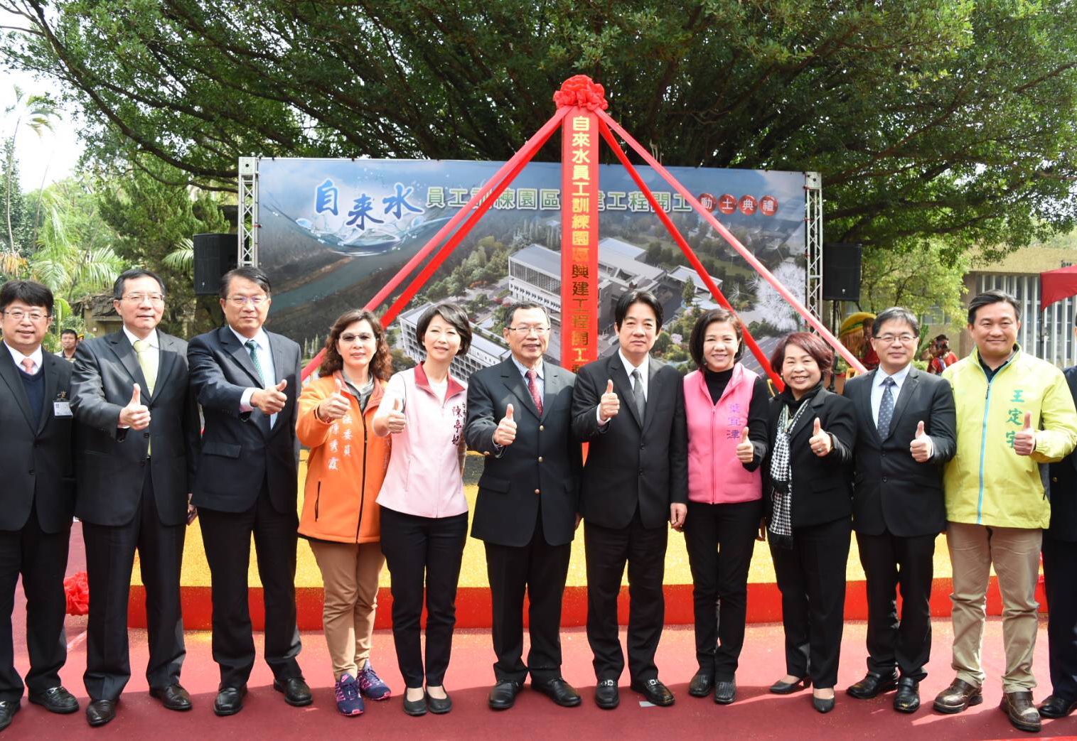 隨後,賴院長出席「自來水員工訓練園區興建工程開工動土典禮」時表示,該園區不僅可作為自來水公司的訓練場地,也可協助訓練邦交國或新南向國家的人員,是國際級的自來水訓練園區。此外,該園區也相當在地化,可供當地鄉親使用。