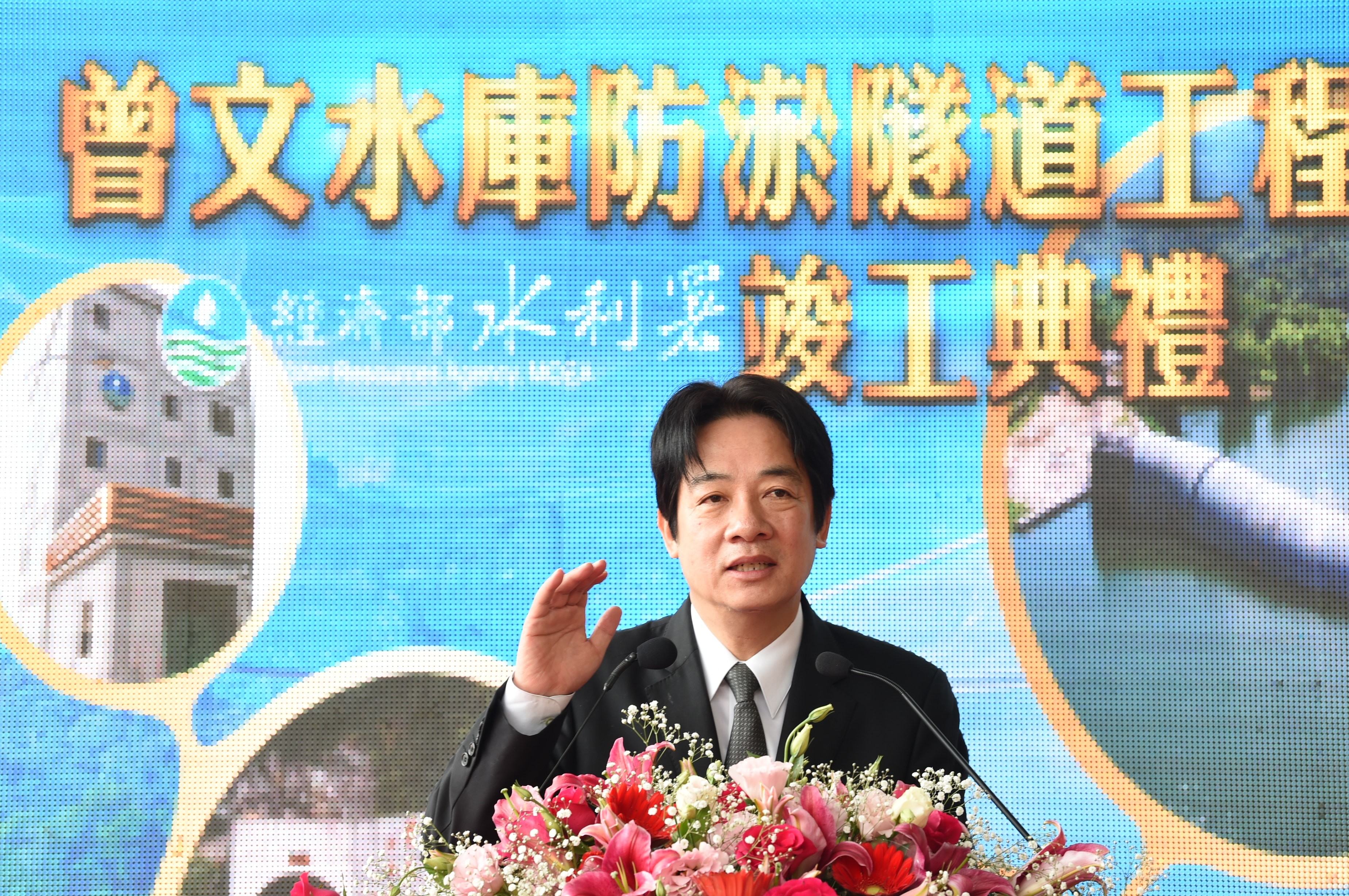 行政院長賴清德今(28)日出席「曾文水庫防淤隧道工程竣工典禮」時表示,該防淤隧道排砂量一年約104萬立方公尺,使水庫的庫容量一年增加約5,500萬噸,助益相當大。未來政府將持續採取開源、節流、調度及備援等作法,並進行水資源相關工程,政府有信心穩定水資源供應,使農業、民生及工業用水無虞,以鼓勵企業家踴躍投資台灣。