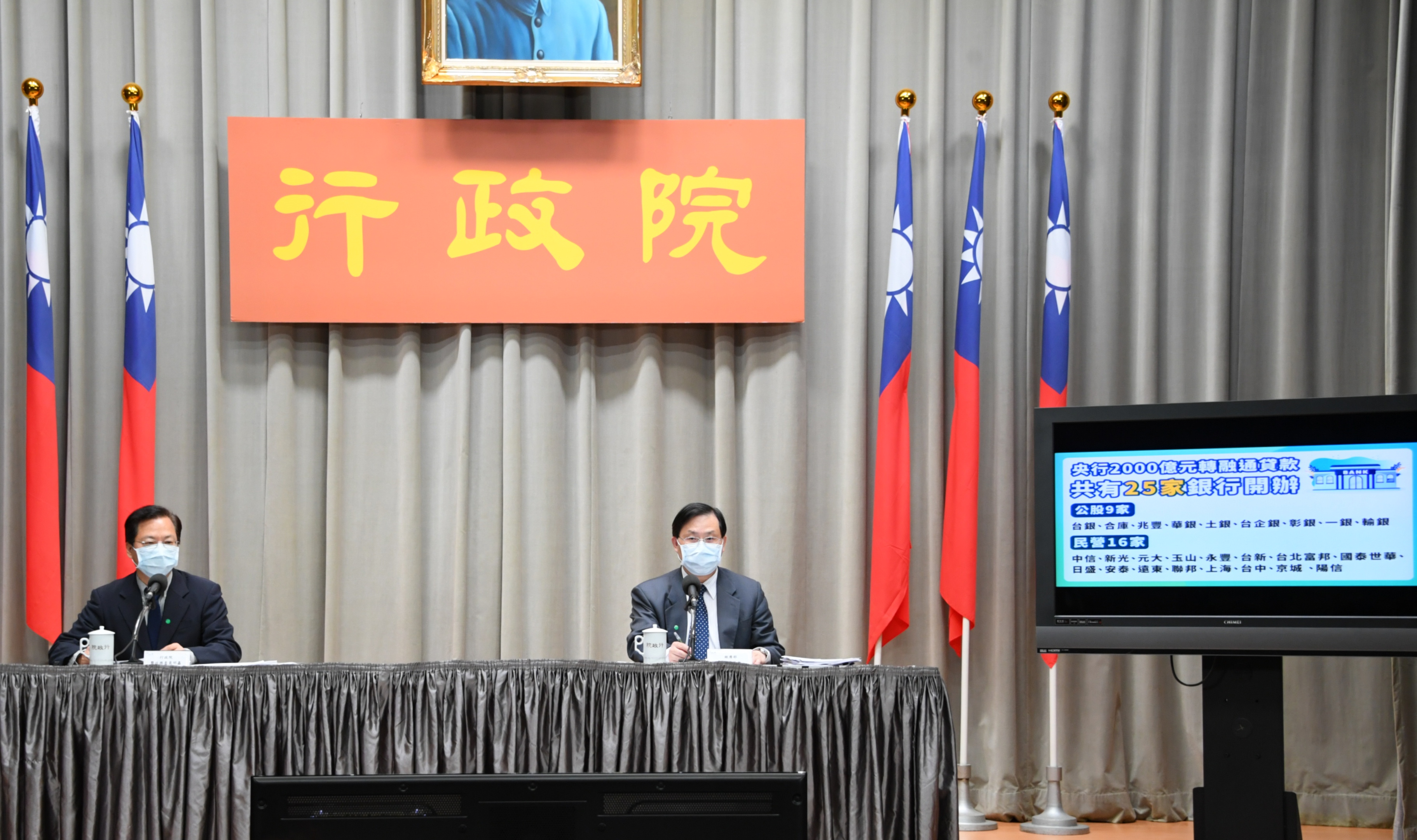 龔政委表示,央行2,000億轉融通貸款共25家銀行開辦,包含9家公股及16家民營銀行。而其中1,000億的資金將開辦小額貸款方案,下週即可開辦,針對受影響中小型事業,貸款額度最高50萬元、10成信用保證、免收保證手續費、貸款利率年利率1%,且申請者3日內核貸,並請銀行提供單一窗口諮詢並簡化核貸流程,免提供擔保品及保證人。此外,若平均營業額減少達15%,政府再提供利息補貼0.845%。