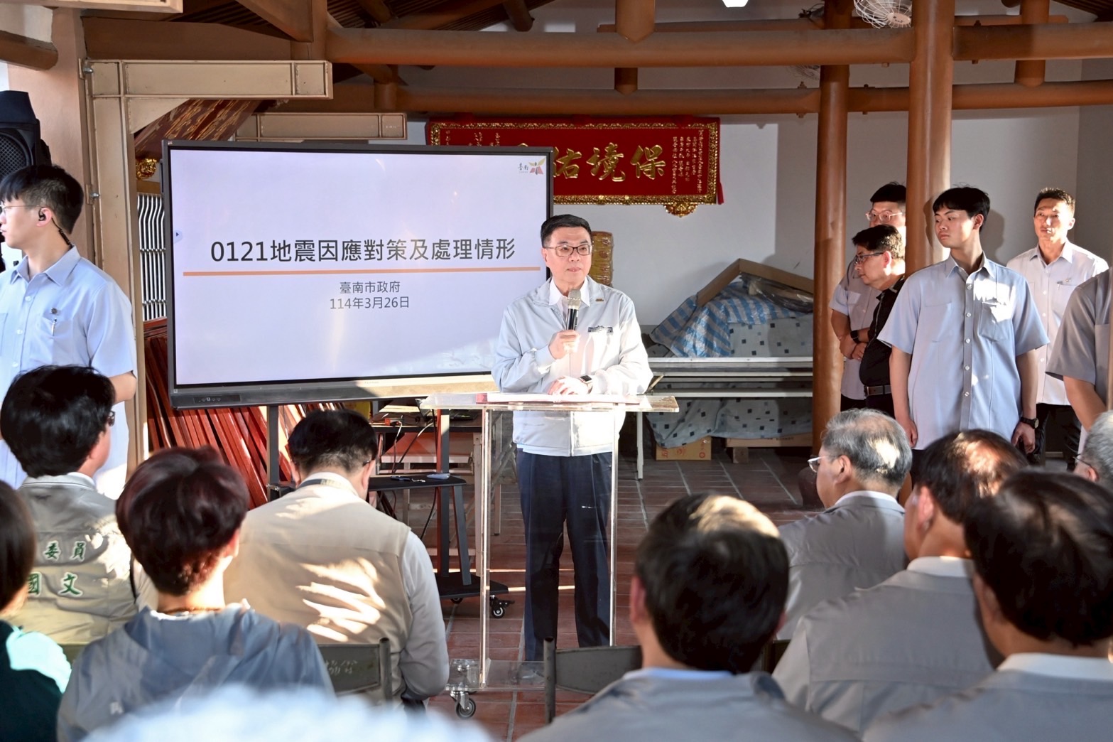 行政院長卓榮泰今(26)日前往臺南市視察0121嘉南地區地震災後復原重建情形時表示,風雨無情,但政府有所準備,要讓人民安心,行政團隊一定會在民眾最需要之時,攜手地方政府與地方民意代表,共同找出問題,並用最快時間,讓所有災損得以彌平。卓院長請行政院龔明鑫秘書長、陳金德政委兼工程會主委,以及內政部、農業部等相關部會在一週內,將臺南市政府今日所反映的問題全部解決,讓地方鄉親安心。