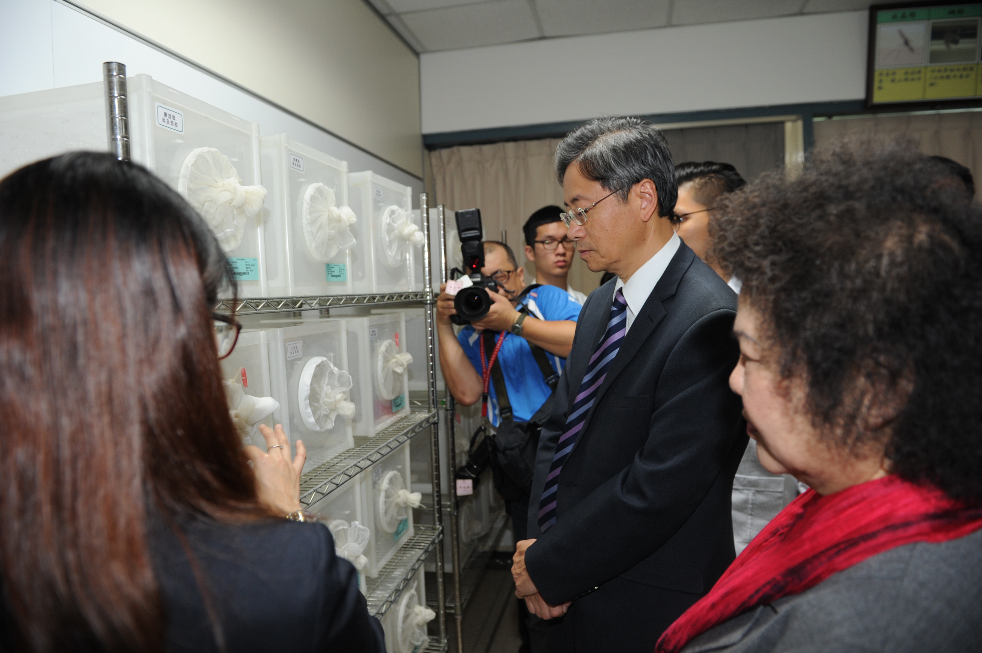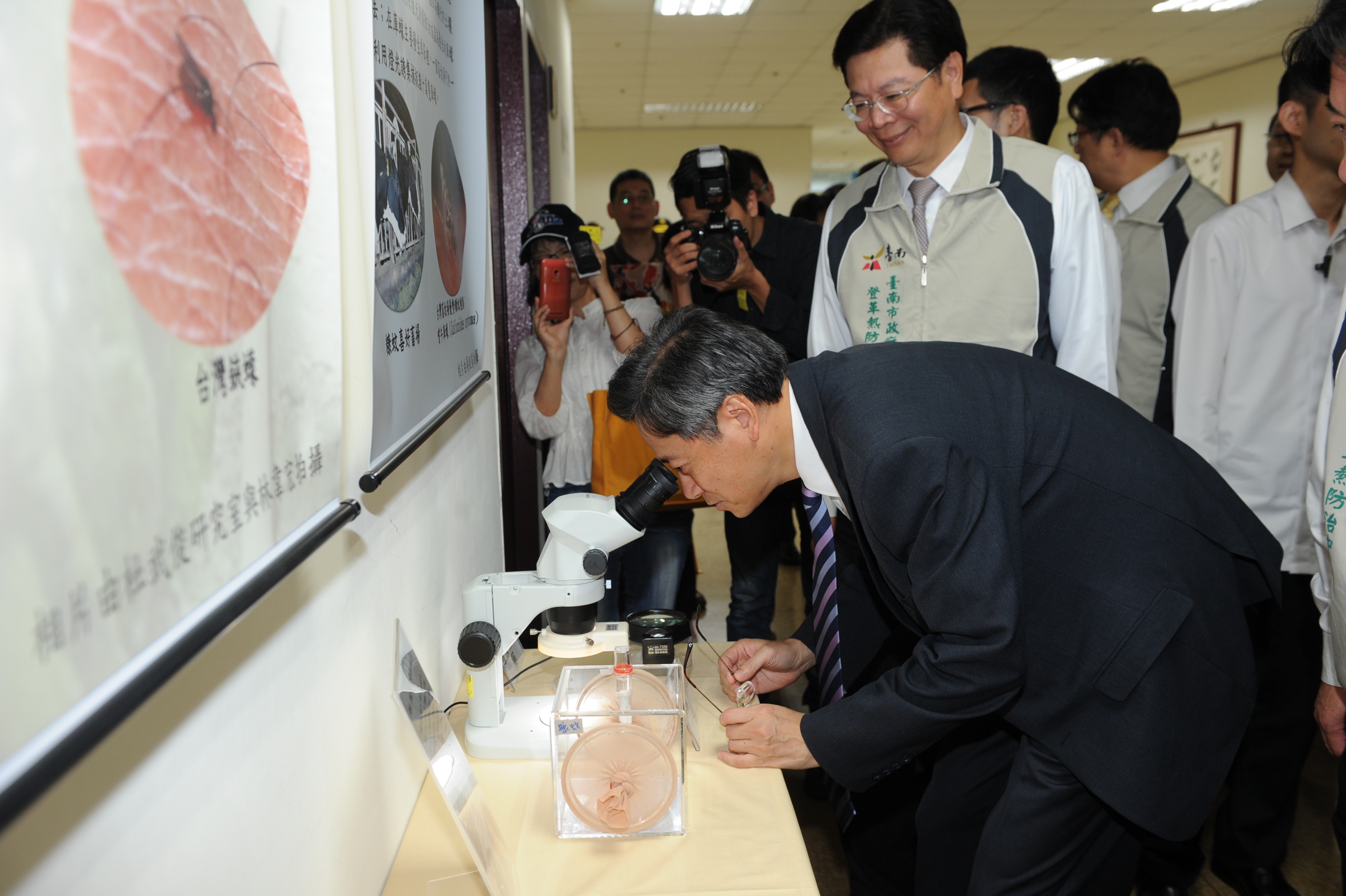 「國家蚊媒傳染病防治研究中心」在張院長分別前往臺南及高雄兩地,並與臺南市長賴清德、高雄市長陳菊等人揭牌啟用後,張院長隨即也與臺南市防治大隊人員握手致意,另亦參觀蚊媒研究室、防蚊設備及藥劑等。