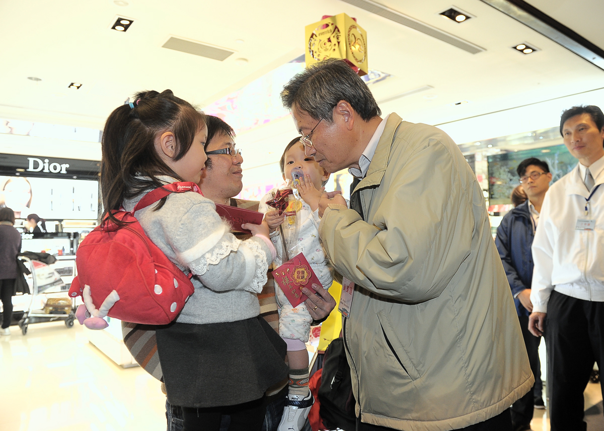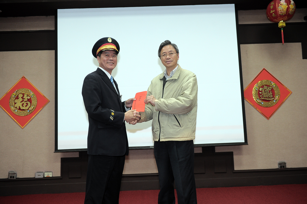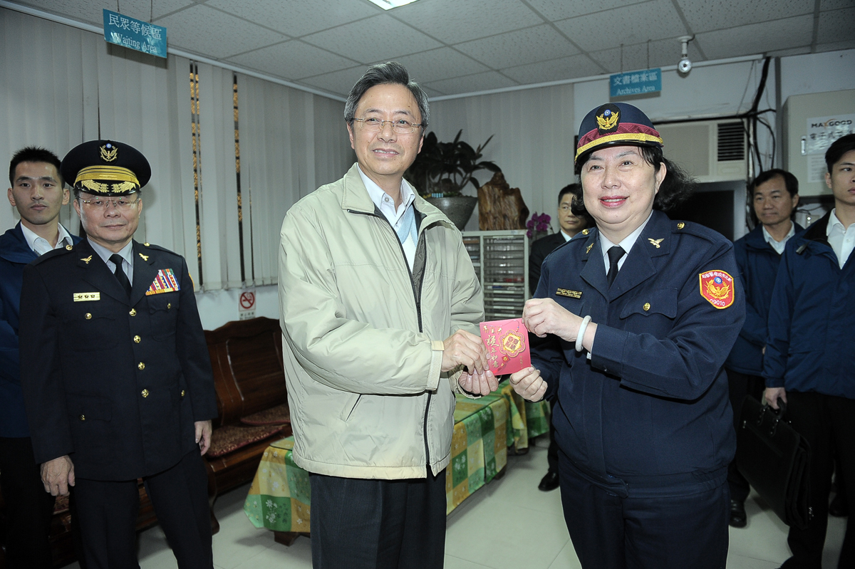農曆春節將屆,為確保民眾順利平安返鄉、歡喜出遊享受假期,行政院長張善政今(5)日前往桃園國際機場、高公局交控中心、臺北車站特定區、鐵路警察局臺北分駐所,以及新店分局屈尺派出所等單位視察,除現場瞭解各項春節疏運措施暨春節期間治安、秩序維護辦理情形外,並分別致贈加菜金為犧牲假期服務民眾的工作人員鼓勵打氣。