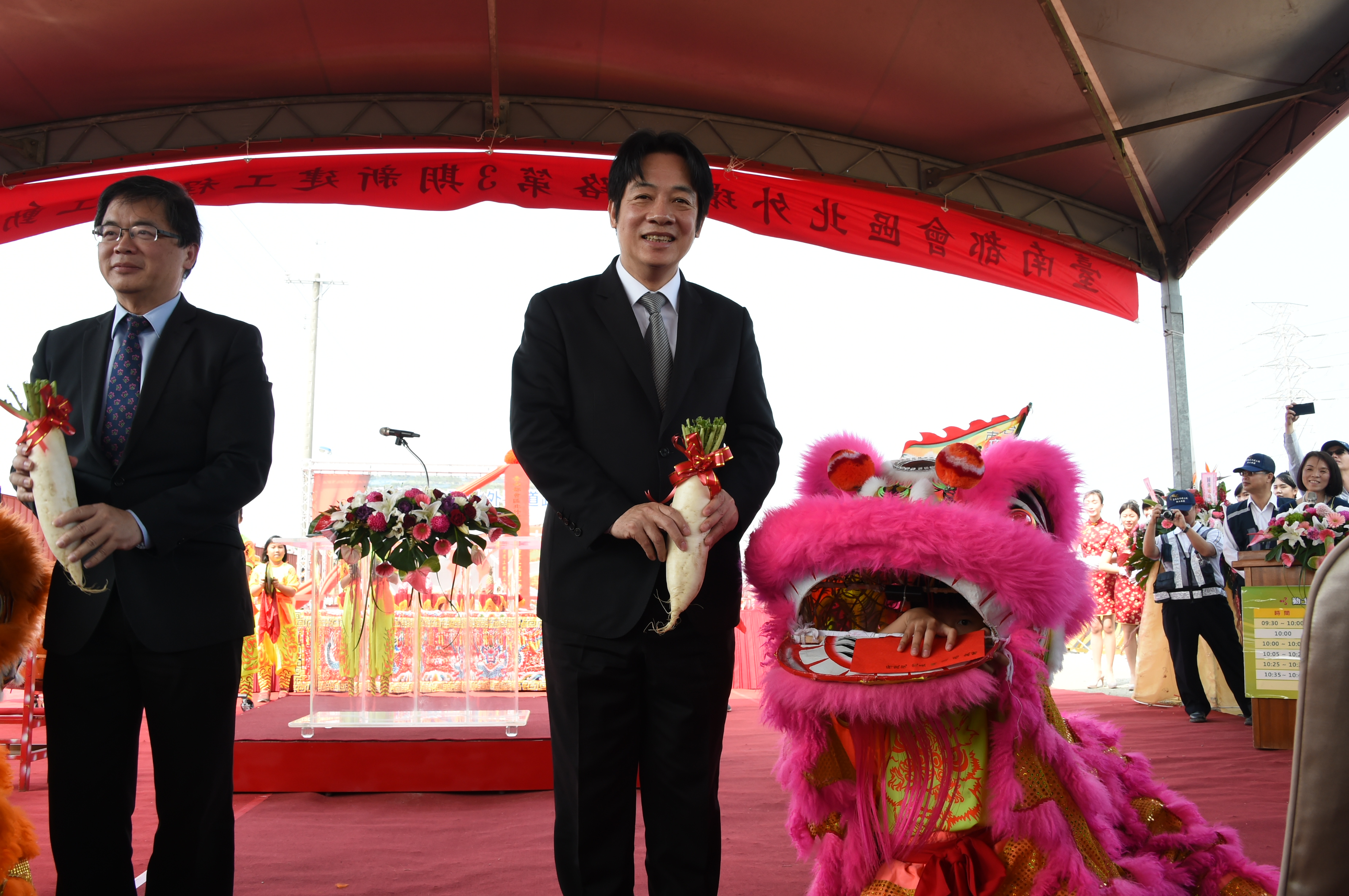 稍後,賴院長出席「台南都會區北外環道路第三期新建工程開工動土典禮」時表示,台南市對此工程爭取多年,總經費約150億元,盼工程完工後,有助台南市中都心及南都心的區域串連,並減少台1線、台19線及國道1號的交通問題。