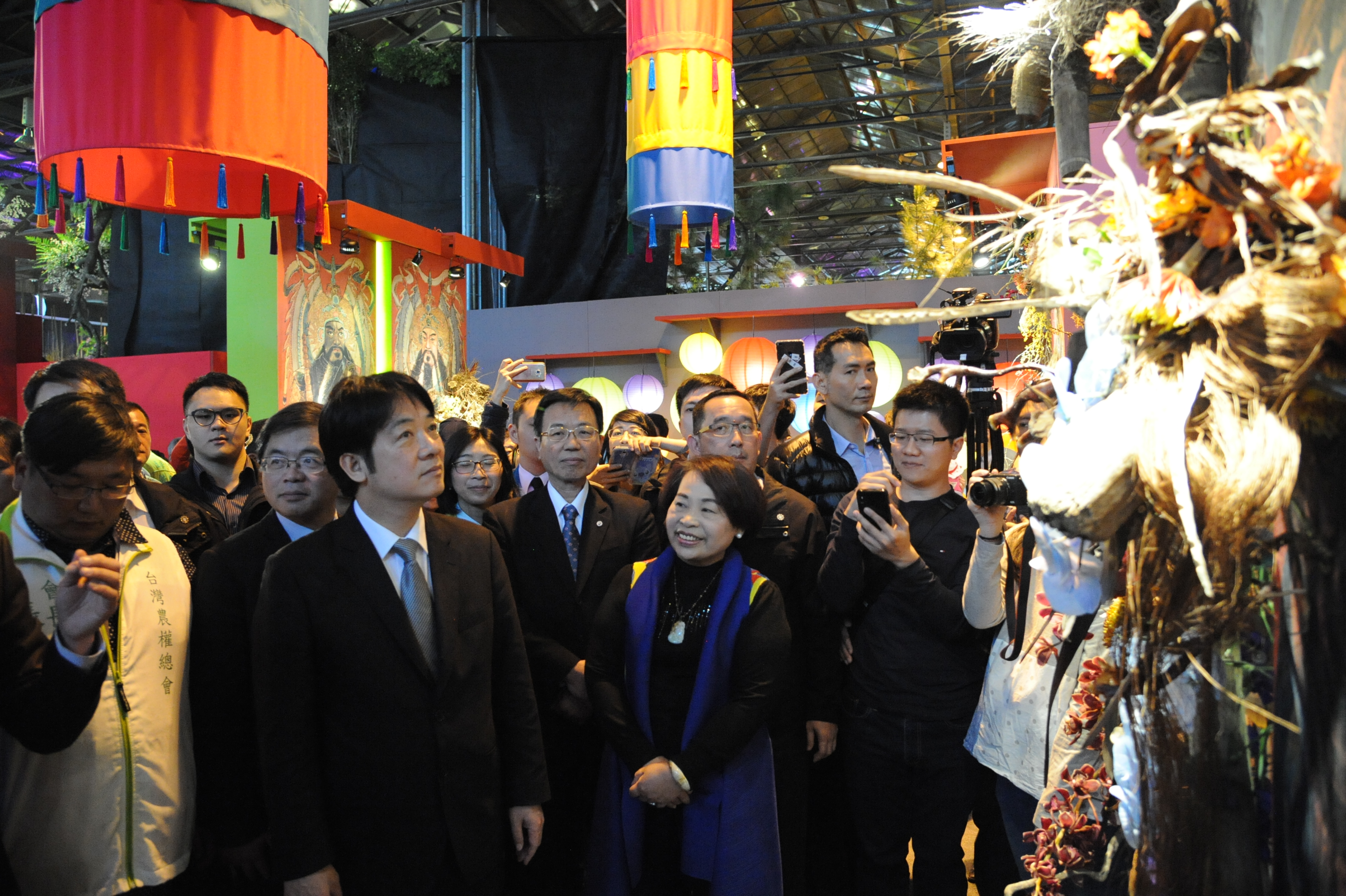 隨後,賴院長赴台南市參觀「2018台灣國際蘭展」,現場參觀蘭亭館-主題佈展區、「結金蘭-蘭信仰」蘭花文創展示區及薈萃館-競賽花展示區。