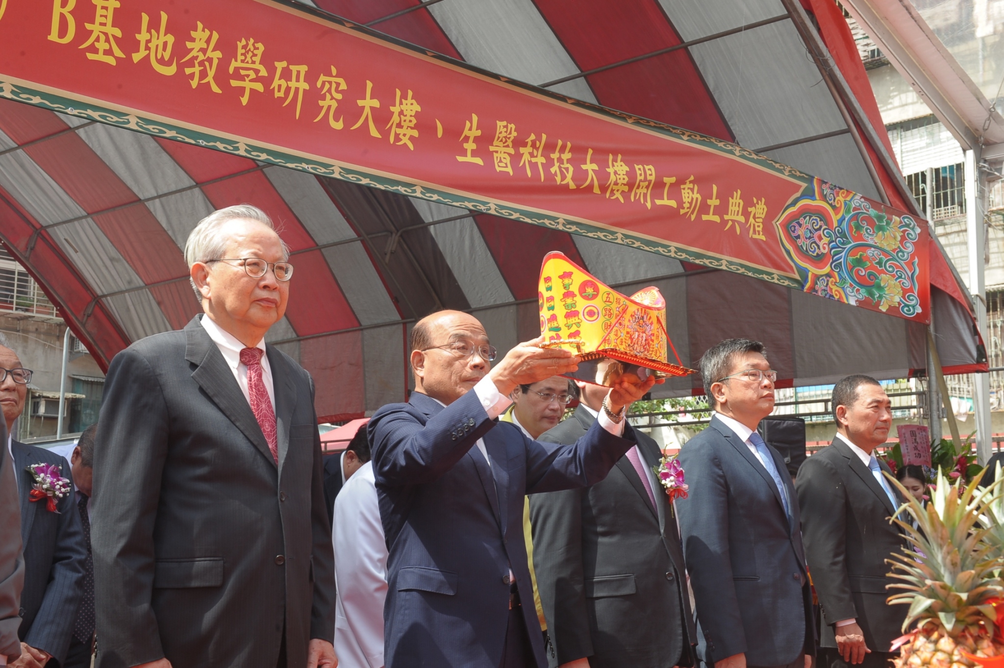 行政院長蘇貞昌今(3)日至新北市出席「衛生福利部雙和醫院B基地動土典禮」時表示,該基地規劃興建生醫科技大樓及教學研究大樓,完工後將可提升雙和醫院醫療照護水準,請衛福部善加督導及支持後續工程,也期盼負責興建經營的台北醫學大學團隊未來在設計規劃運作上,能更妥善照顧雙和地區民眾及長者。