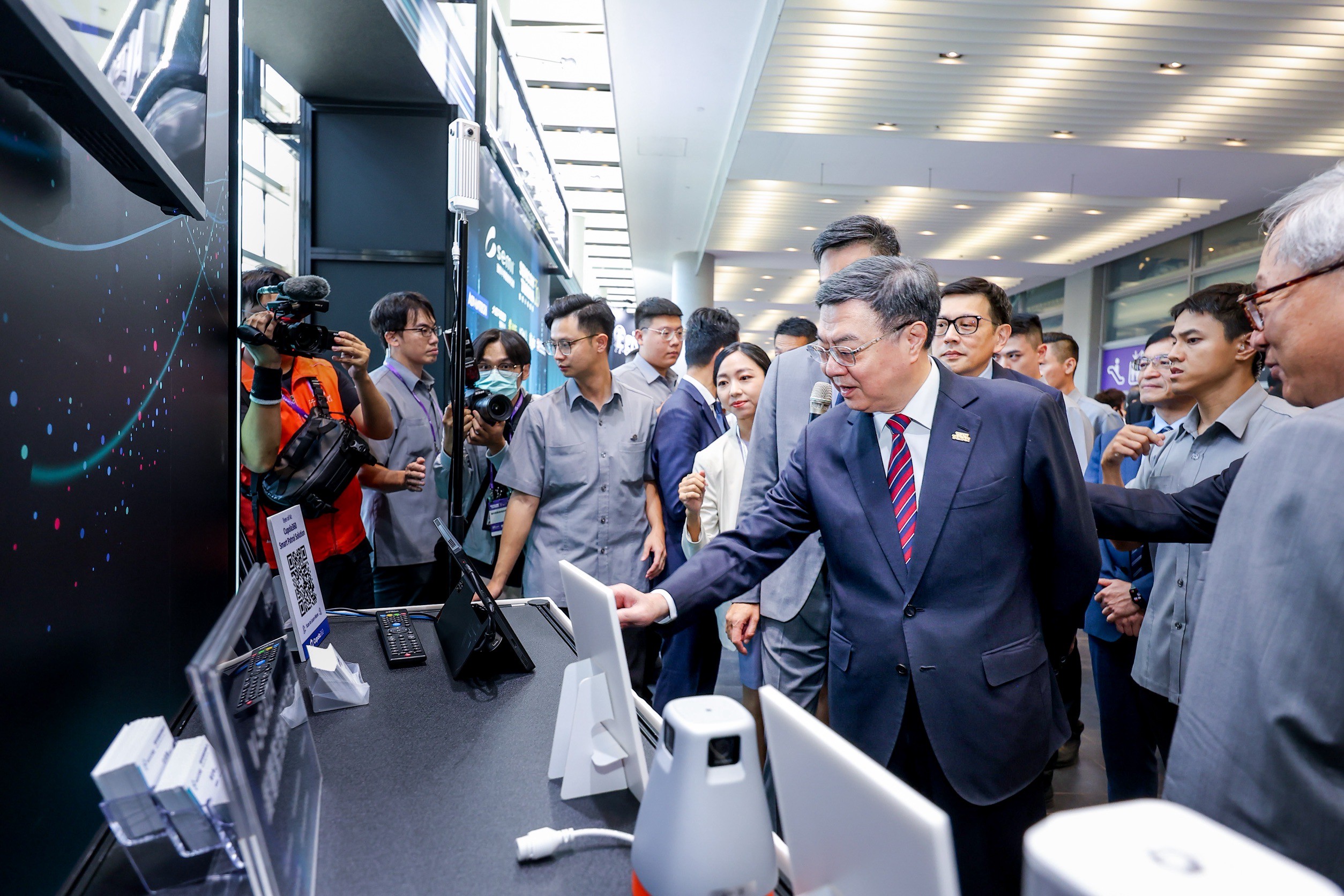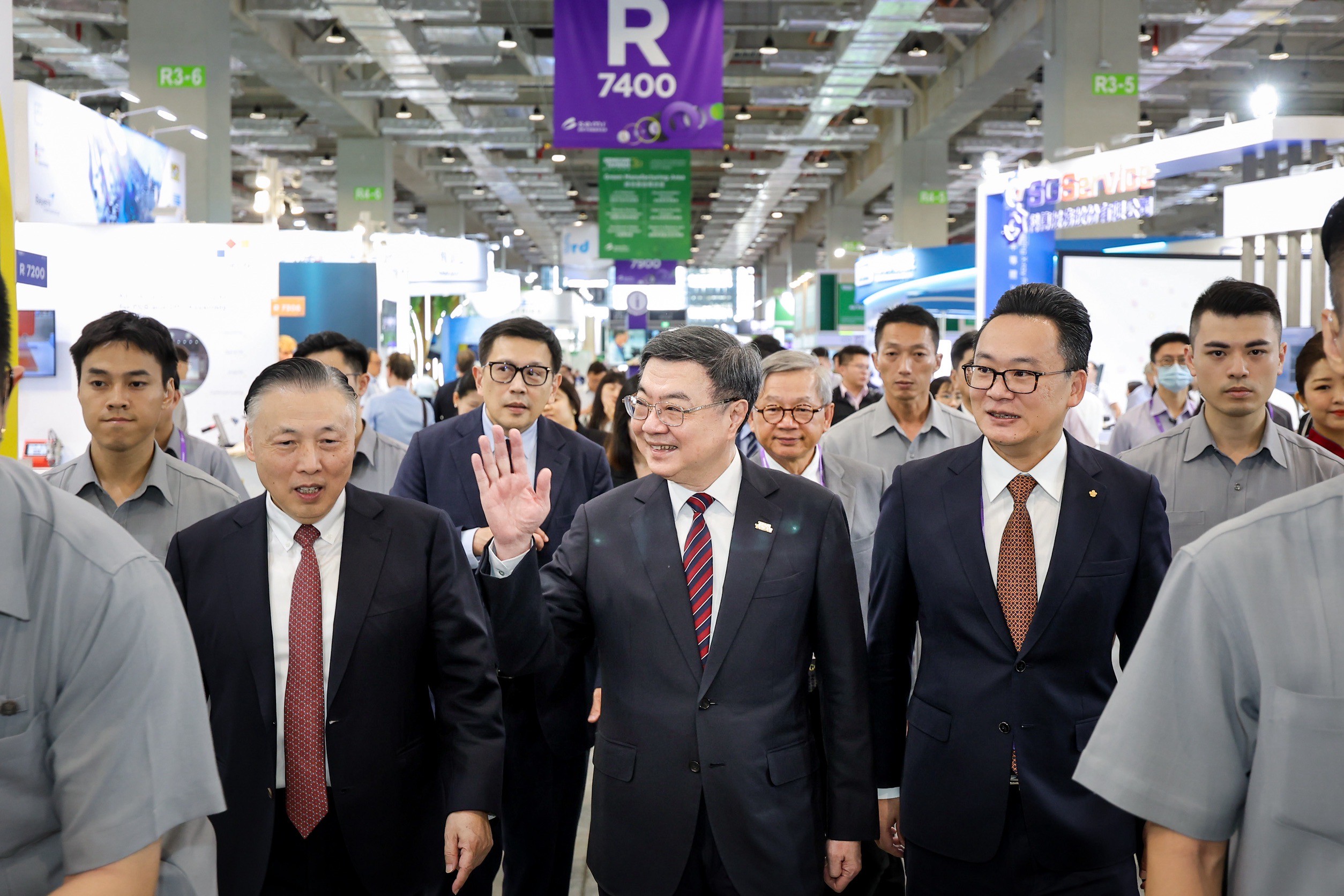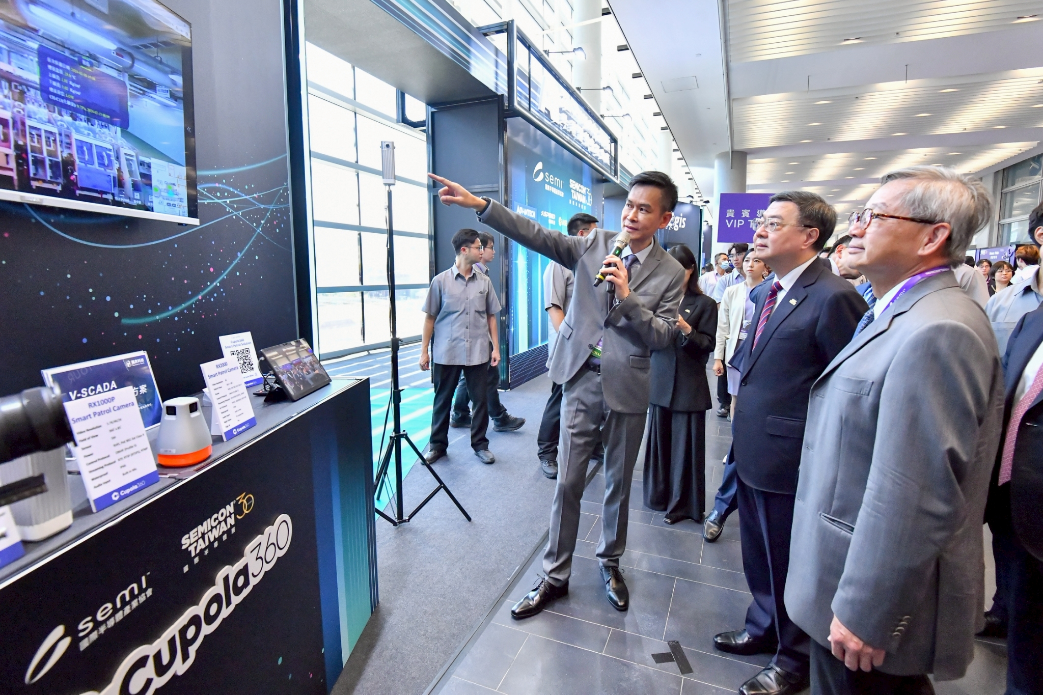 致詞結束後,卓院長率同與會貴賓進行開幕儀式,為今年國際半導體展揭開序幕。隨後,卓院長前往展區依序參觀信驊科技、神盾、濾能、鈺祥企業等攤位,聆聽解說並合影留念。包含總統府沈榮津資政、行政院吳誠文政委兼國家科學及技術委員會主委、李慧芝發言人、外交部陳明祺次長、經濟部何晉滄次長等均出席今日開幕典禮。