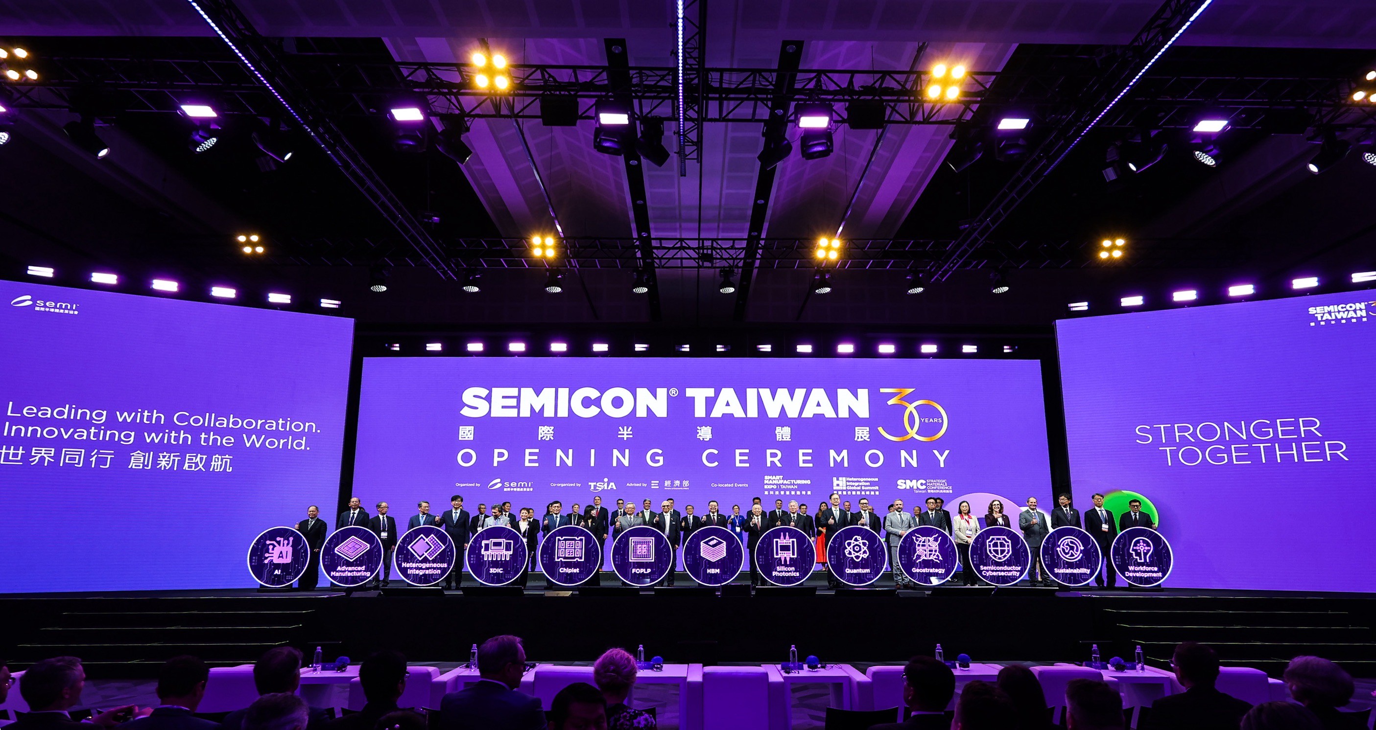 卓院長指出,SEMICON Taiwan國際半導體展舉辦30年來,規模一年比一年擴大、成績一年比一年成功。今(2025)年共有17國設立國家館,較去(2024)年13國更顯增加,還有超過60國、1,200多家廠商集合智慧結晶,帶來全世界最創新的科技。他期待未來臺灣半導體產業發展能符合今年展覽主題「世界同行 創新啟航(Leading with Collaboration. Innovating with the World.)」,成為一條非常值得嚮往與追求的路。