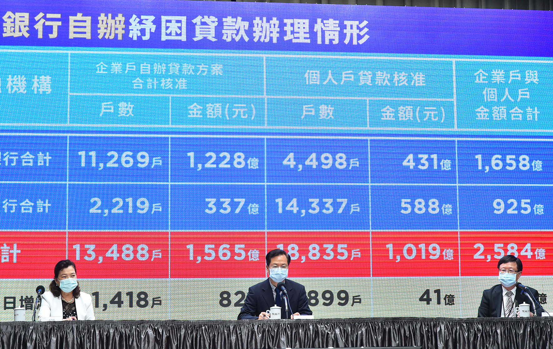 有關政府辦理紓困貸款方案情形,龔政委指出,整體已經近4千億元,截至昨(4)日為止,本國銀行合計受理申請16,184戶、2,184億元;累計已核准9,783戶、1,397億元。國內銀行自辦紓困貸款方面,包括公股銀行、民營銀行核准企業戶及個人戶,合計金額2,584億元;中央銀行承作50萬小額貸款已核保11,798戶,金額560,525萬元;「勞工紓困貸款」至4日已受理7萬5千多筆。