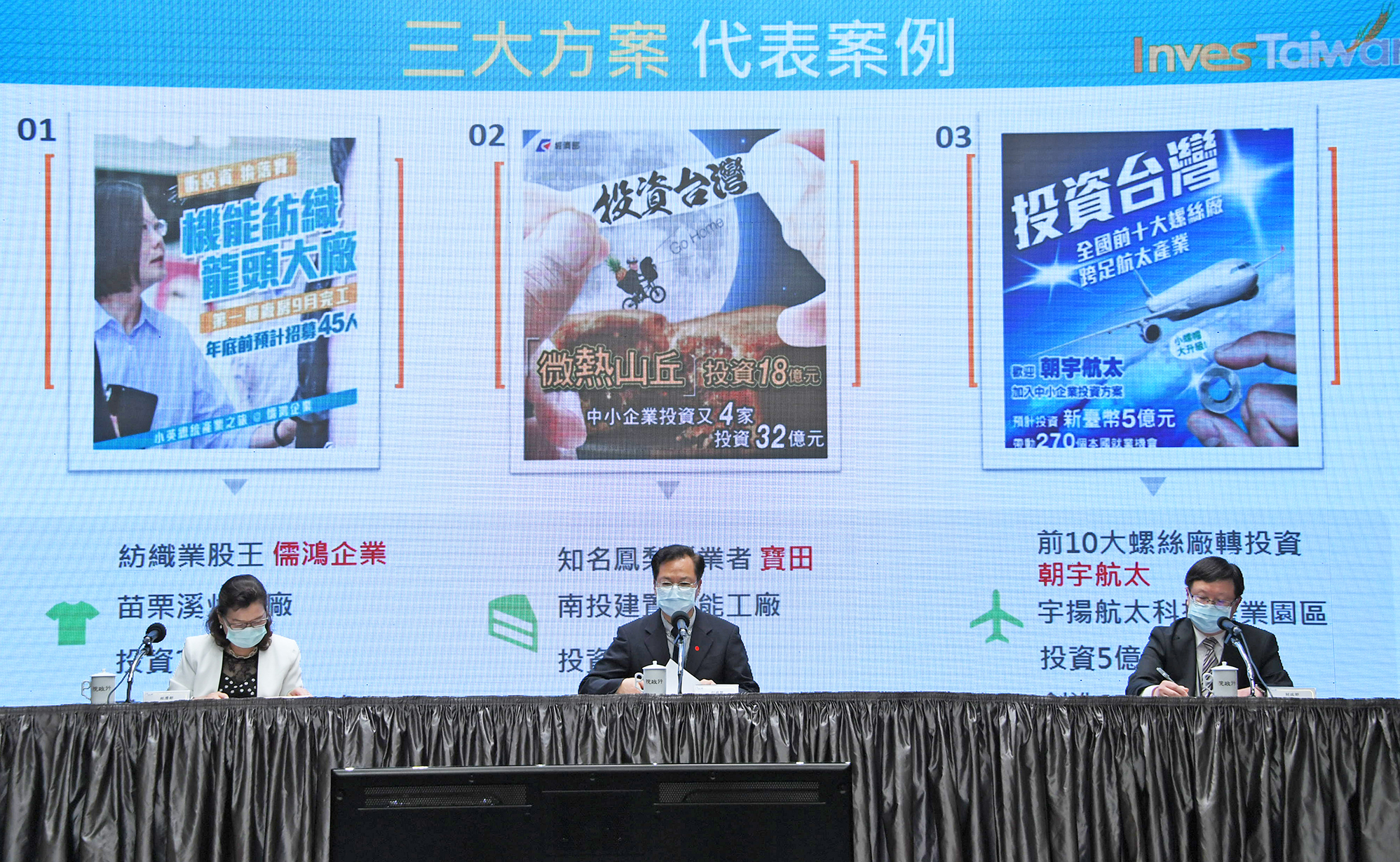 行政院政務委員龔明鑫今(5)日與經濟部次長王美花、財政部次長吳自心召開行政院紓困振興方案「看好台灣 回流資金持續加碼」記者會時指出,受武漢肺炎疫情影響,台商回台投資與境外資金回台增加,因此政府自去(108)年推動「投資台灣三大方案」,投資金額可望在5月20日前達標破兆元,並創造逾8萬多個就業機會。相較先進國家、中國及亞洲四小龍,台灣今(109)年經濟成長率1.54%的表現相當不錯,台商回台投資是上半年經濟成長率的重要角色。政府將持續以「協助弱勢、穩定就業、保住經濟」等紓困機制,促進經濟成長。
