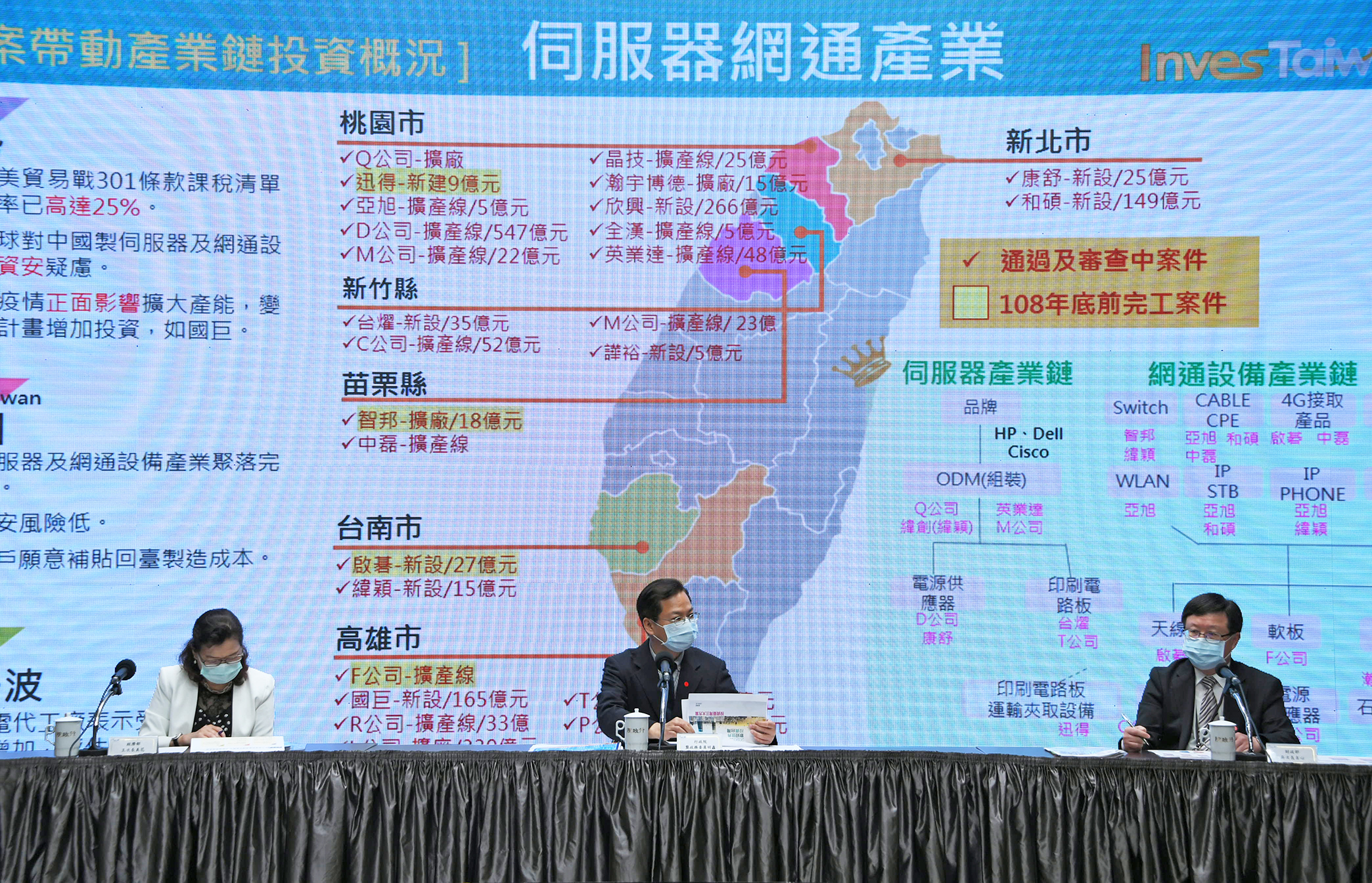 龔政委指出,隨著疫情發展,美國、日本都開始鼓勵企業回國投資,美國白宮經濟顧問庫德洛(Larry Kudlow)提出美國企業回美投資,政府應提供100%的搬遷補助;日本政府也提供約22億美元協助日本企業從中國撤退;台灣自去年美中貿易戰開始,即「超超前部署」台商回台投資行動方案,所提供誘因未如美日龐大,成效卻相當不錯。
