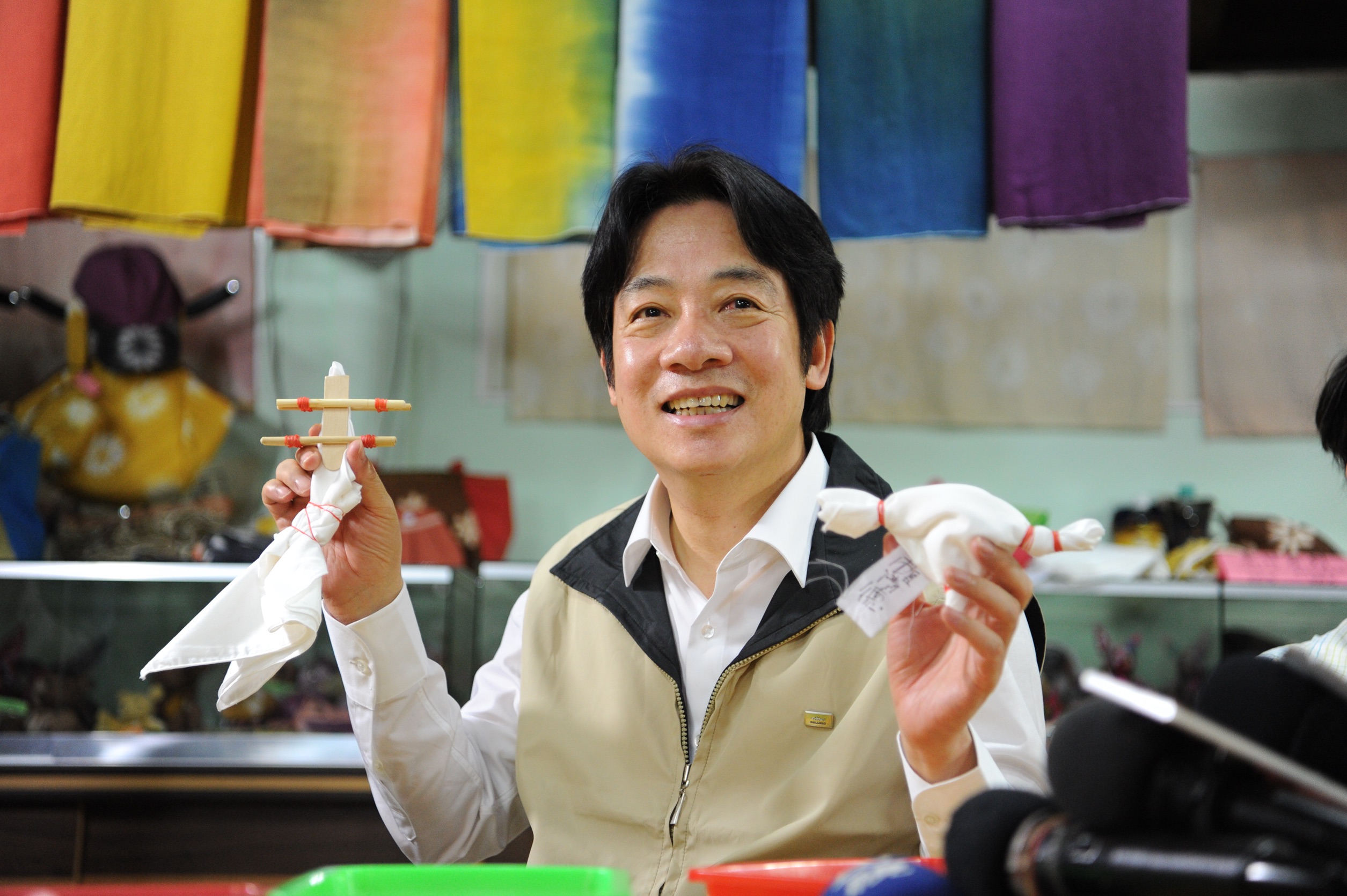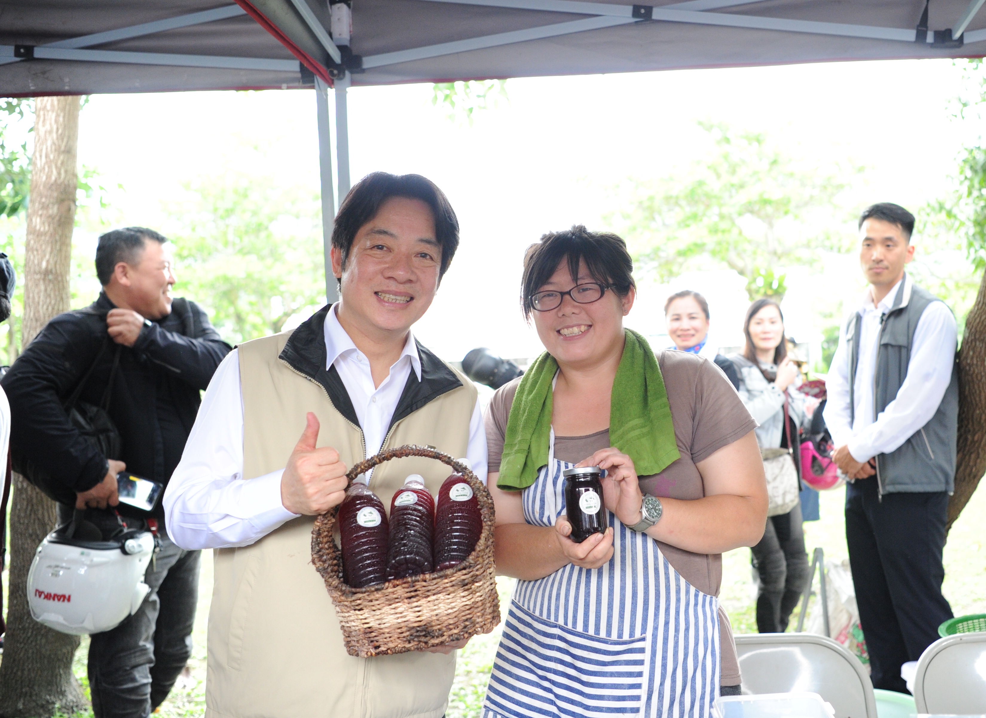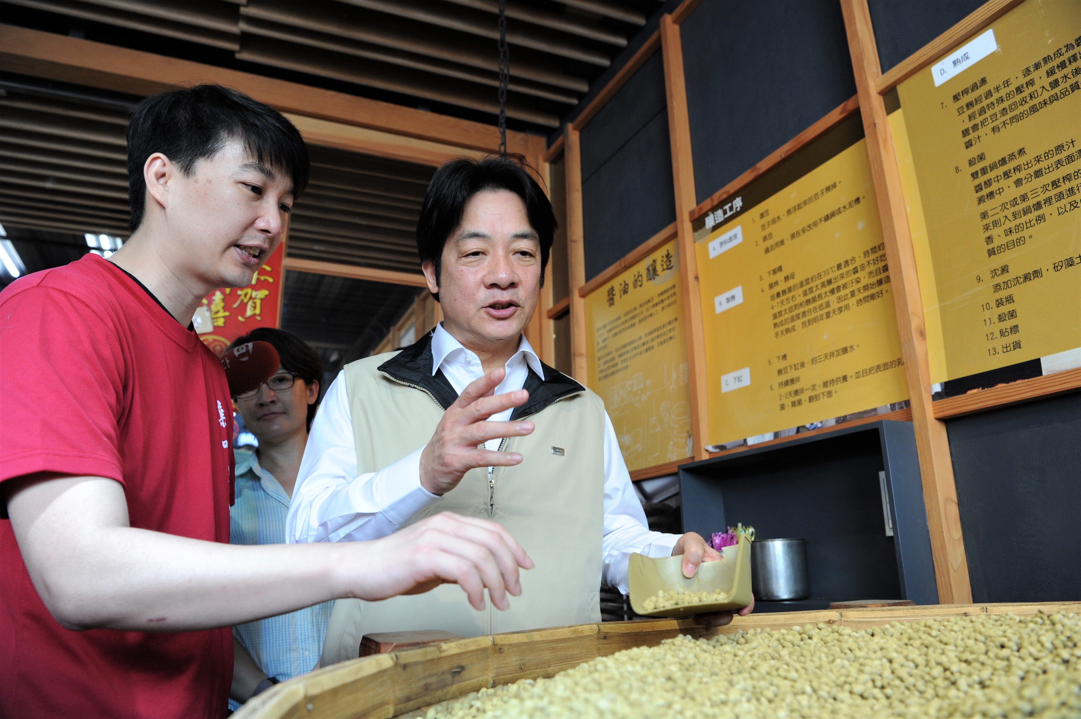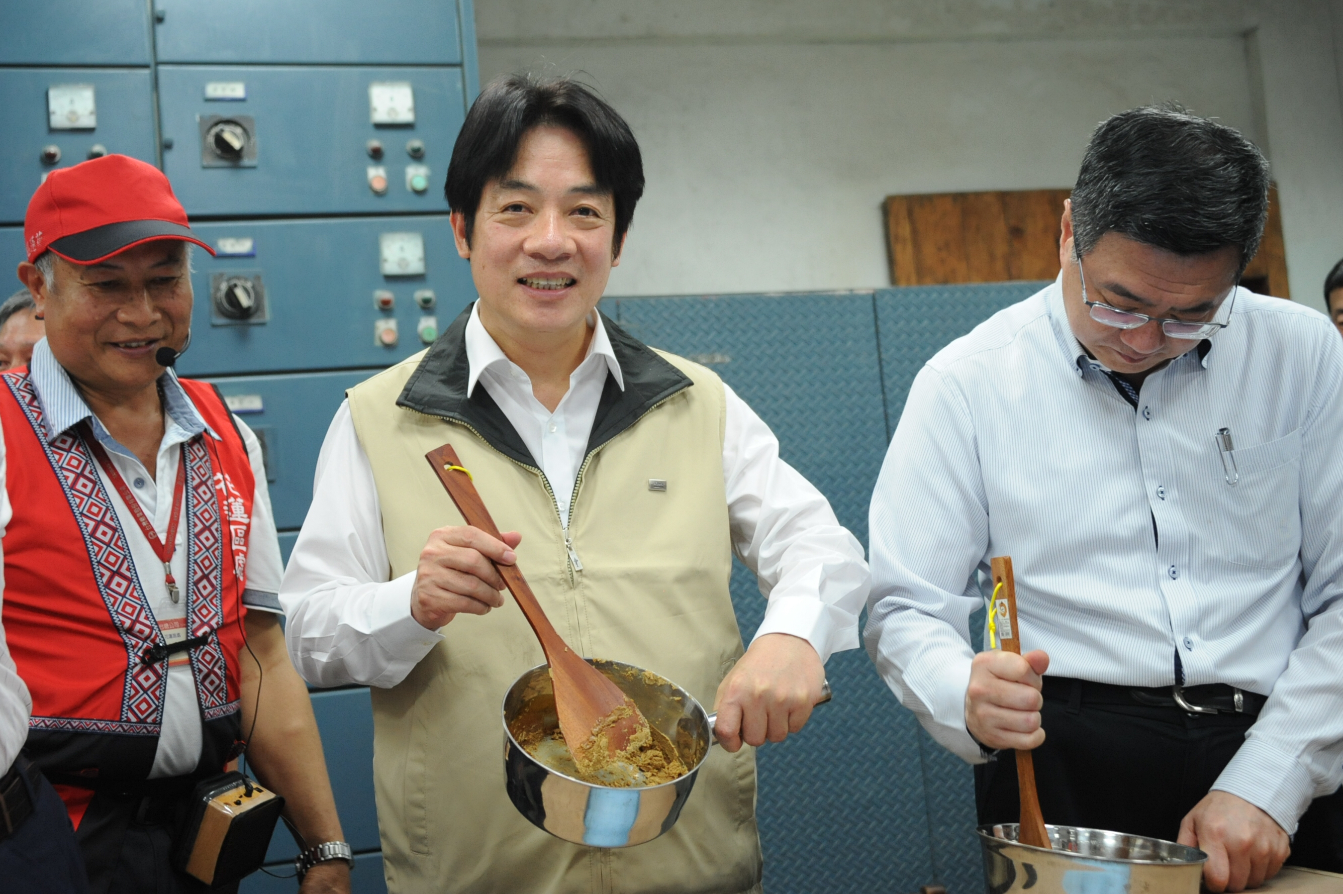 賴院長上午與媒體參訪將軍府,並於新味醬油食品廠親手壓製醬油、豆腐乳。午後,賴院長將參訪客家文物館體驗染布、光復糖廠體驗製糖。
