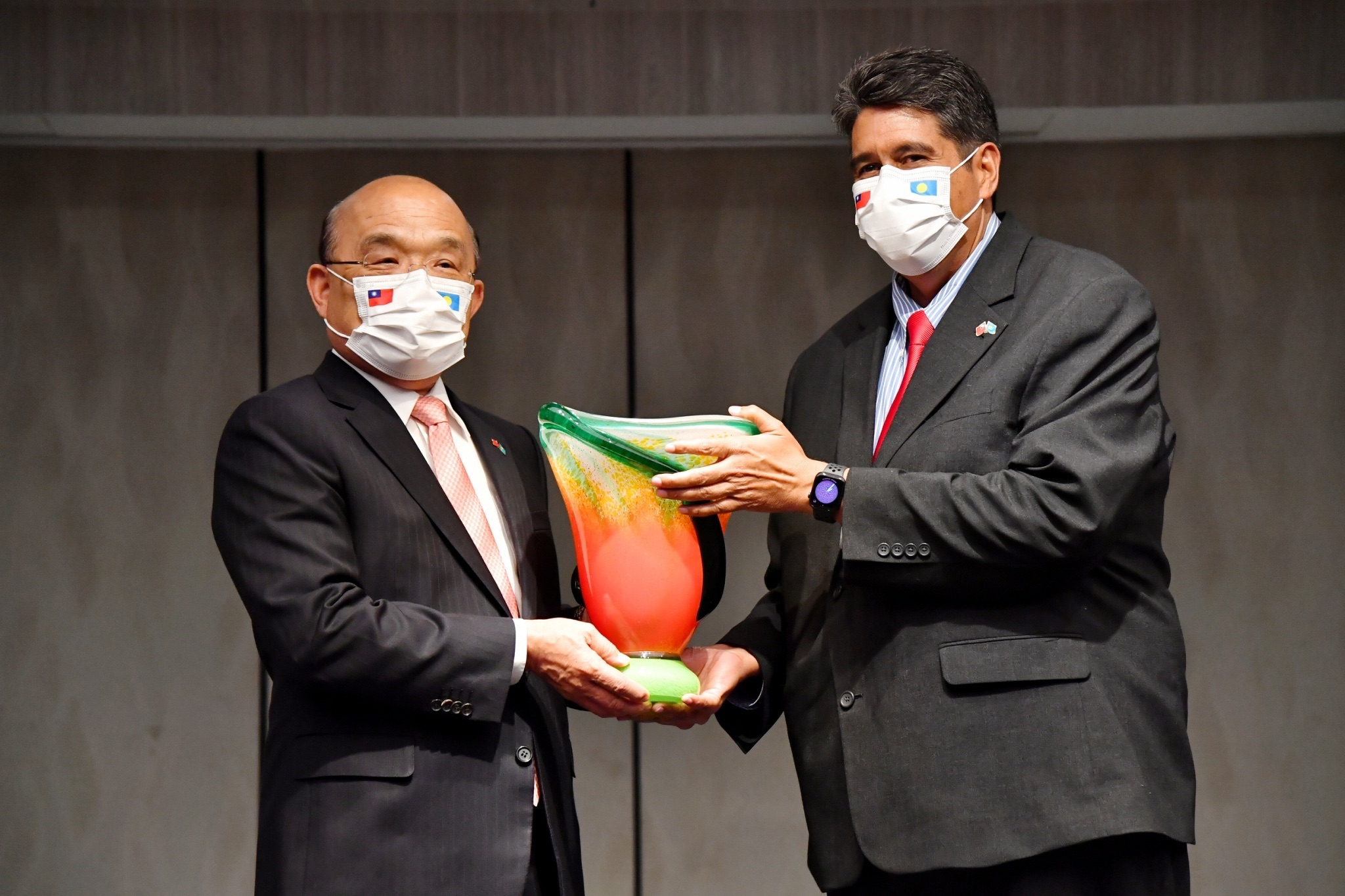 蘇院長感謝帛琉在國際社會不遺餘力地支持臺灣。他指出,中國從未間斷打壓我國國際生存空間,且持續不斷地從經濟、軍事及外交等各方面干擾。帛琉不畏懼中國無理的「戰狼外交」手段,秉持公理正義,在聯合國、世界衛生組織、聯合國氣候變化綱要公約及國際民航組織等大會中持續為臺灣強力發聲執言,院長代表臺灣政府與人民,向帛琉表示誠摯的感謝。