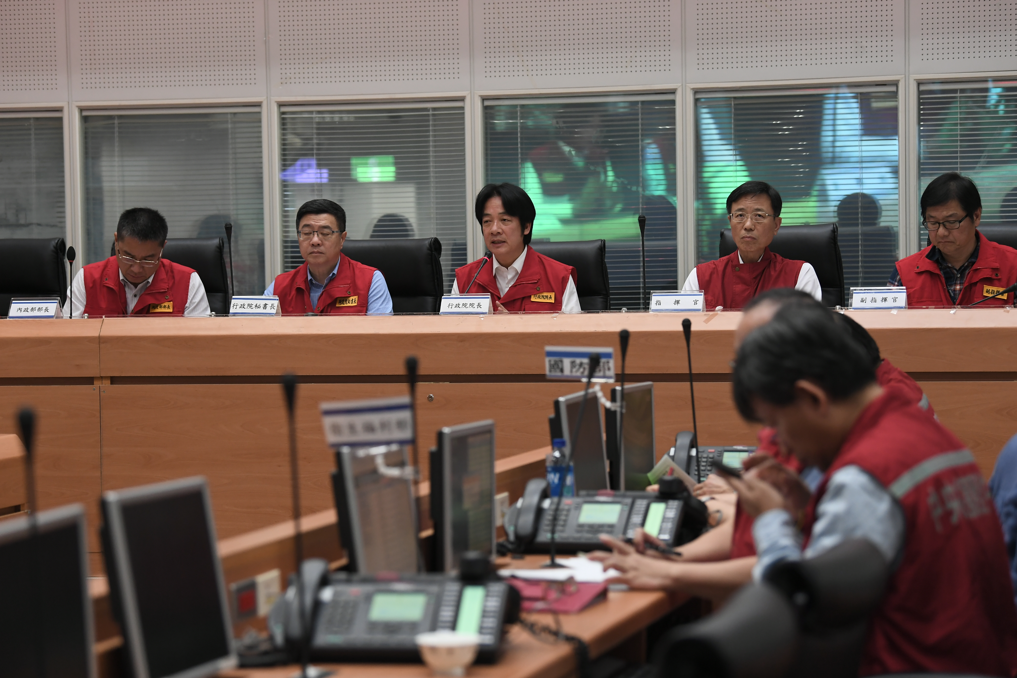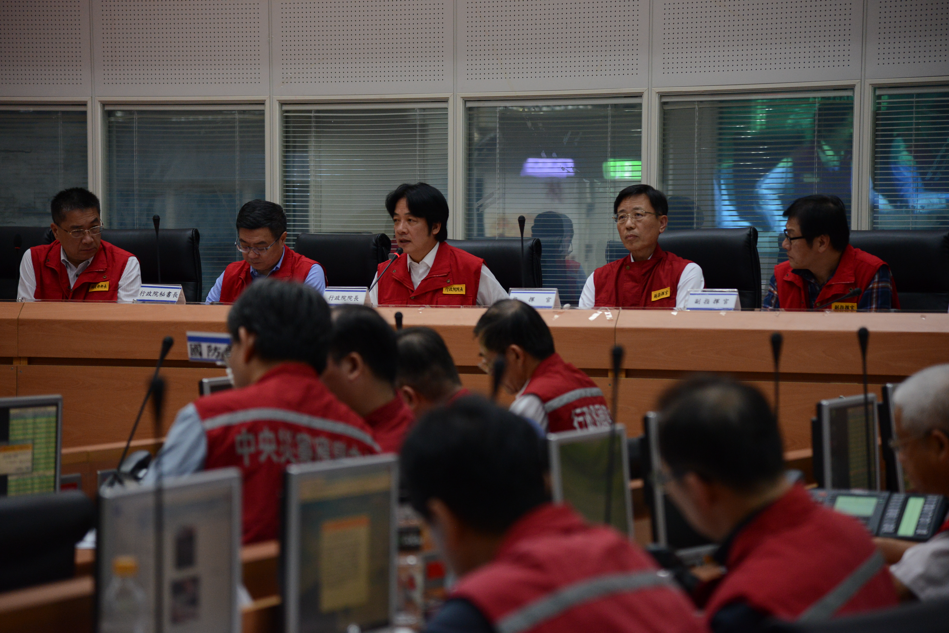 2018年10月21日行政院長賴清德赴中央災害應變中心聽取台鐵普悠瑪6432次列車出軌事故簡報