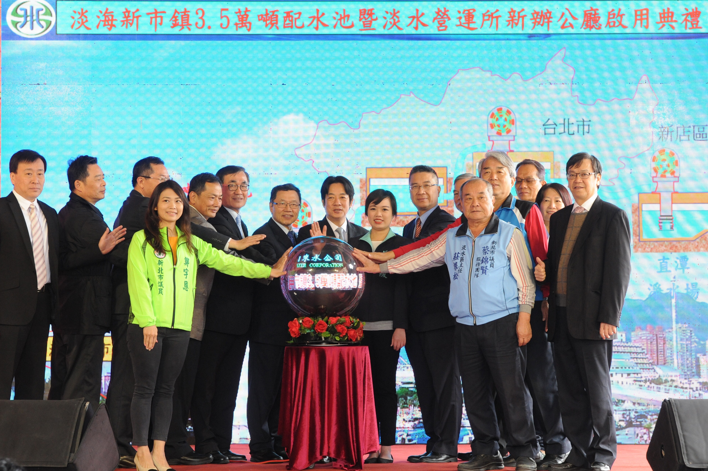 行政院長賴清德今(17)日出席「台灣自來水公司第一區管理處淡海新市鎮3.5萬噸配水池暨淡水營運所辦公廳啟用典禮」,期勉自來水公司同仁共同完成三大目標:一、穩定供給淡海新市鎮未來發展的用水需求;二、解決淡水鄉親過去「位處水尾」的困境;三、做為支援新市鎮與淡水地區持續發展最重要的來源。