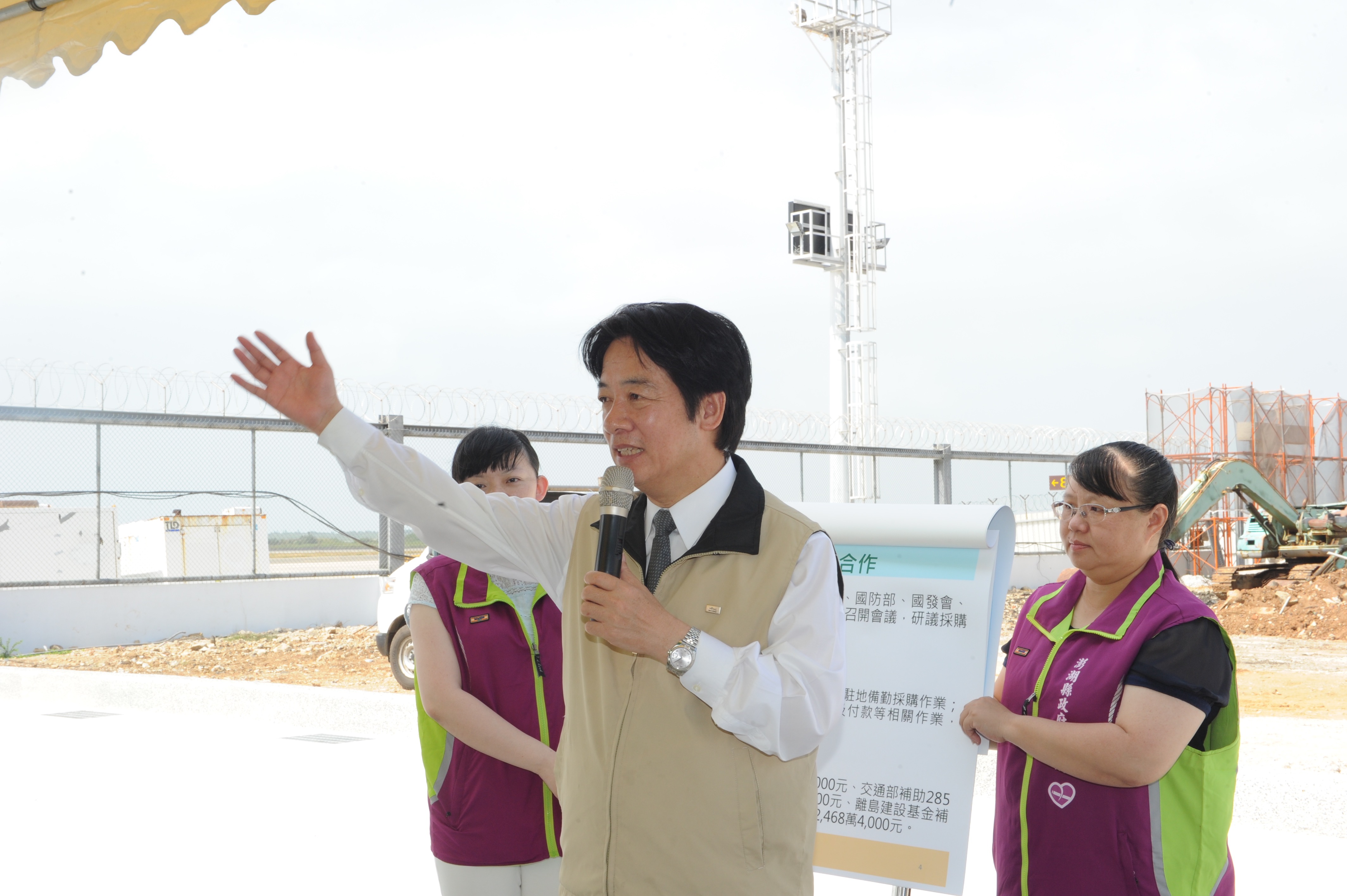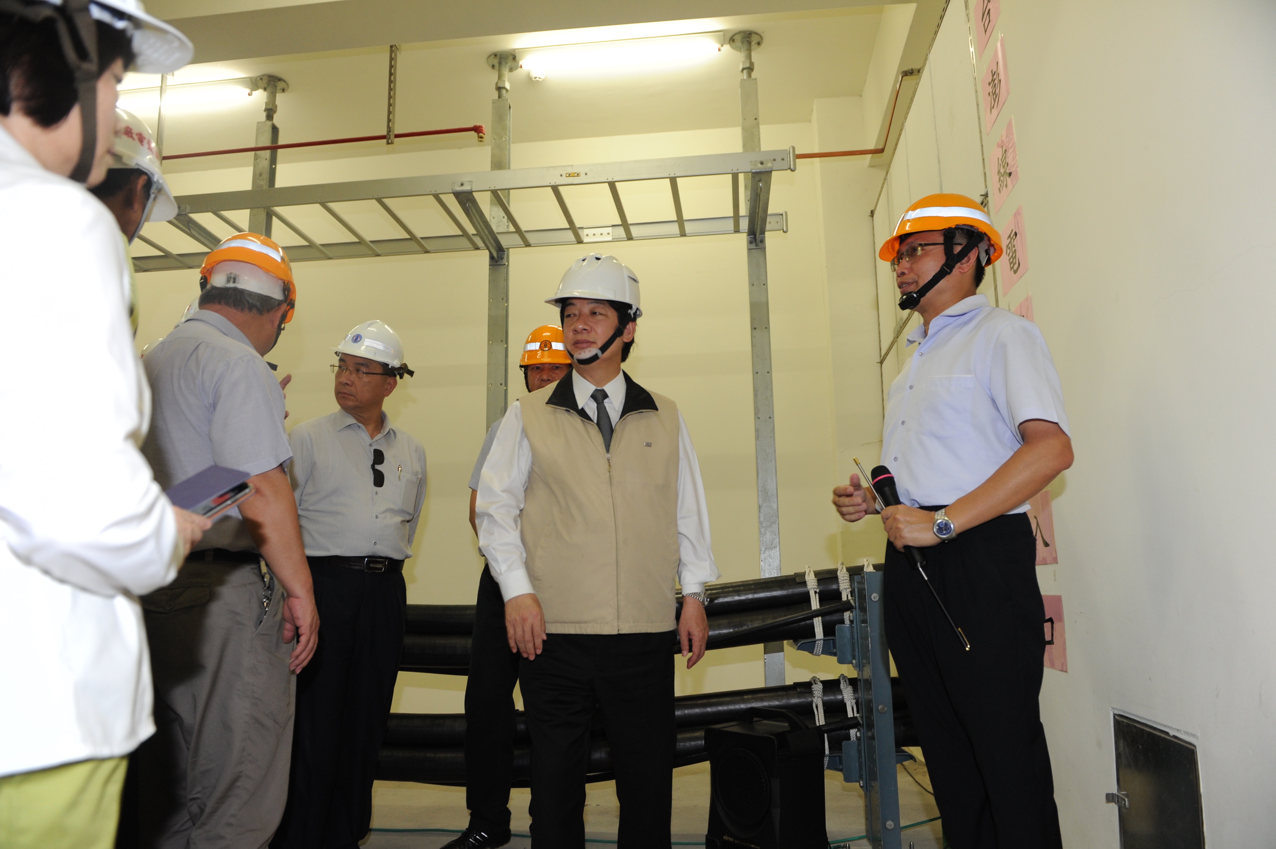 稍早,賴院長視察「海底電纜銜接點」並聽取台電公司「台灣-澎湖161kV電纜線路工程執行情形說明」簡報後表示,目前澎湖端的電纜工程已經完成,剩下雲林端部分,後續中央將請雲林縣政府以及口湖鄉長處理協調,讓電纜工程以及低碳島建設順利完成。感謝台電公司努力、澎湖縣長陳光復及澎湖縣議會協助。