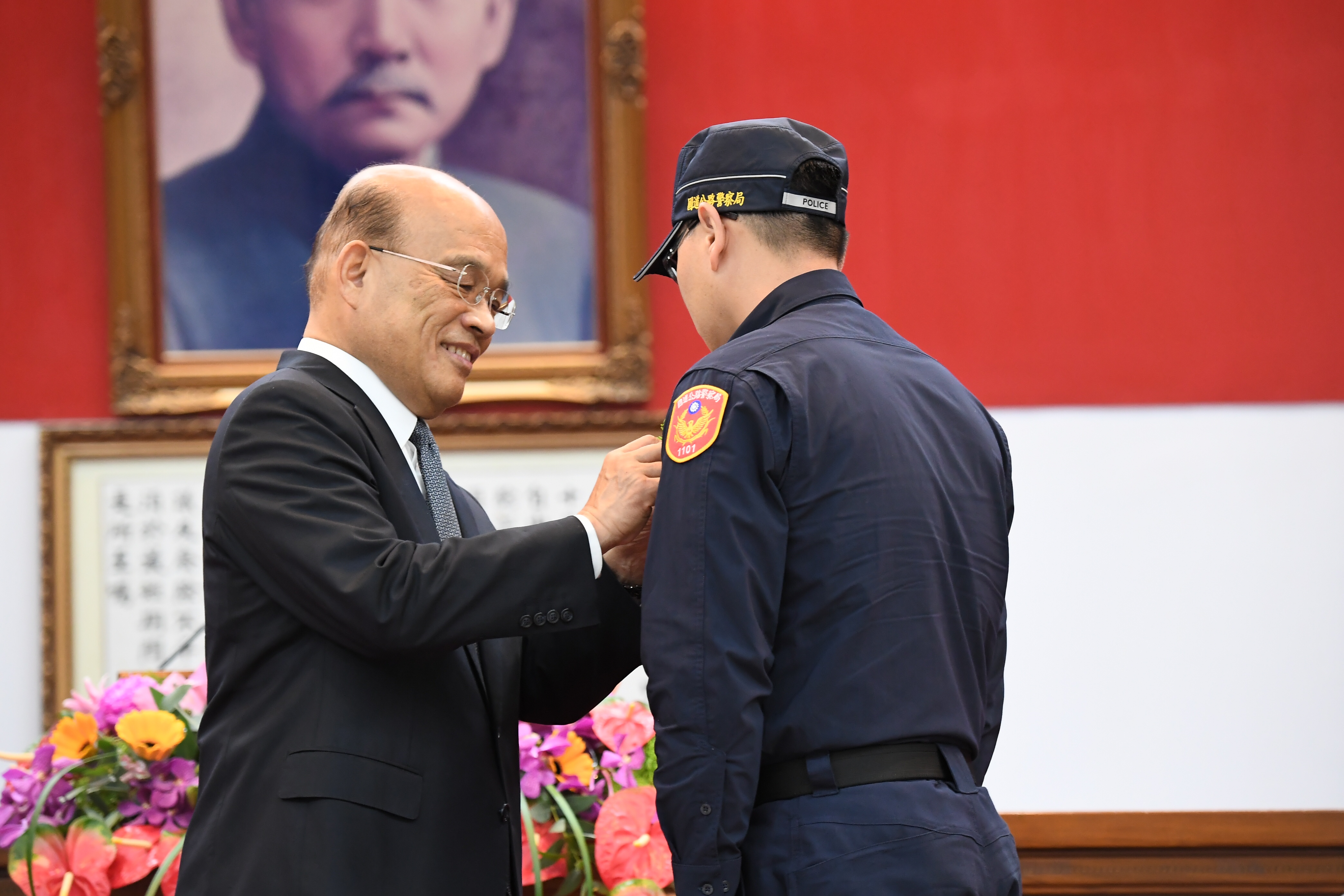 適逢警察節前夕,行政院長蘇貞昌今(14)日出席「108年警察節慶祝大會」,頒發「資深績優警察獎章」,感謝警察同仁堅守崗位、為民服務。蘇院長表示,蔡總統相當重視警察相關法令、福利的完善、車輛、應勤裝備的提供,政府一定努力從資源面作警察最佳後盾。