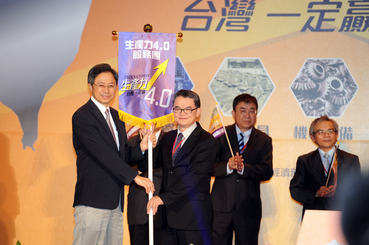 活動中,毛院長率領經濟部、科技部、教育部、農委會、衛福部及勞動部等部會,會同七個重點產業公會理事長、各產業籌組之生產力4.0服務團,以及八大公協會代表,共同進行「生產力4.0發展方案」啟動儀式,並進行服務團授旗,宣示產官學研共同推動生產力4.0的承諾與決心。