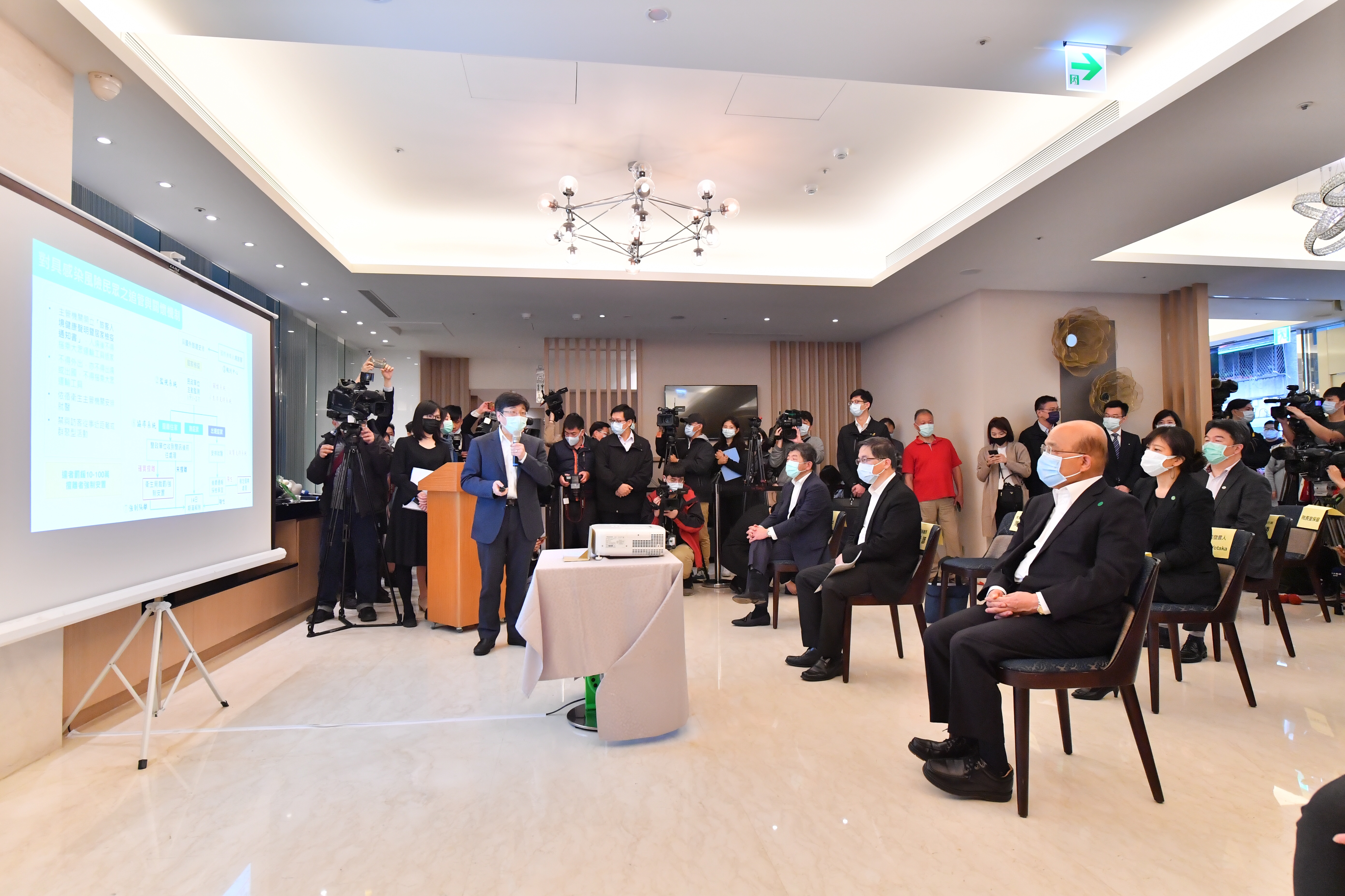 蘇院長也特別感謝疫情指揮中心、交通部及行政團隊,並表示,很多方面大家一起合作,且都能夠預先設想,再一步一步執行,例如防疫車隊越來越有經驗,且越做越好;以及如同衛福部陳時中部長所言,起初設置檢疫所遇到種種困難,但因為管理得很好,民眾接受;防疫旅館也一樣,台北市及各縣市也漸漸投入。所以台灣人民的水準非常高,政府真的很努力,台灣在防疫上,真的「有政府、請安心」,希望大家一起加油,讓台灣能夠平安。