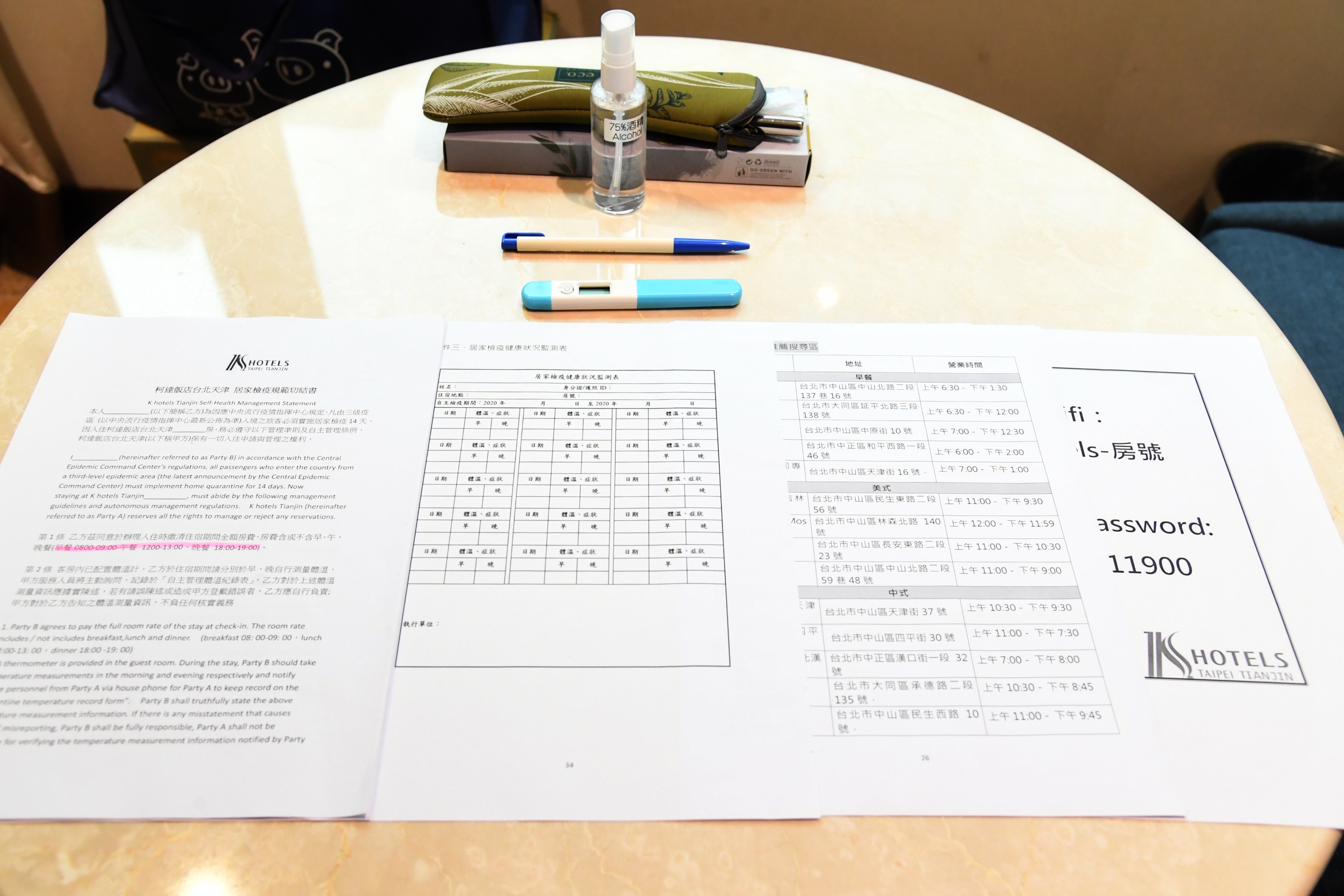 此行,蘇院長視察旅客抵達報到(check in)模擬流程,並瞭解垃圾收取及消毒、送餐等流程,以及聽取防疫客房介紹,並感謝服務人員提供良好入住環境。