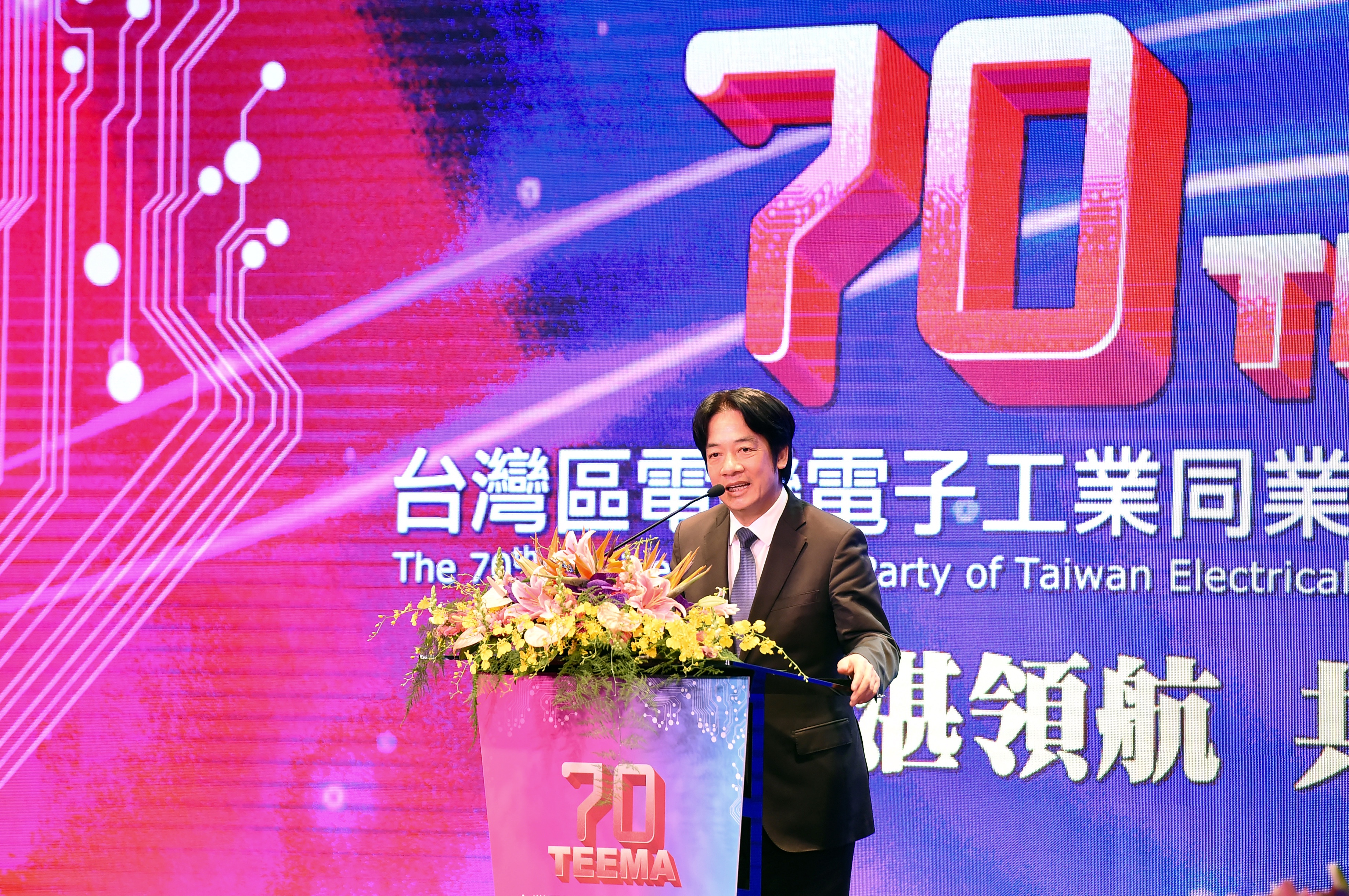 行政院長賴清德今(11)日出席「台灣區電機電子工業同業公會70週年慶祝茶會」時表示,政府會以行動支持企業界投資台灣,有信心解決企業加碼投資台灣所面臨的五缺問題,且已設置相關媒合平台,期許政府與電機電子產業界合作,推動台灣經濟持續往前。