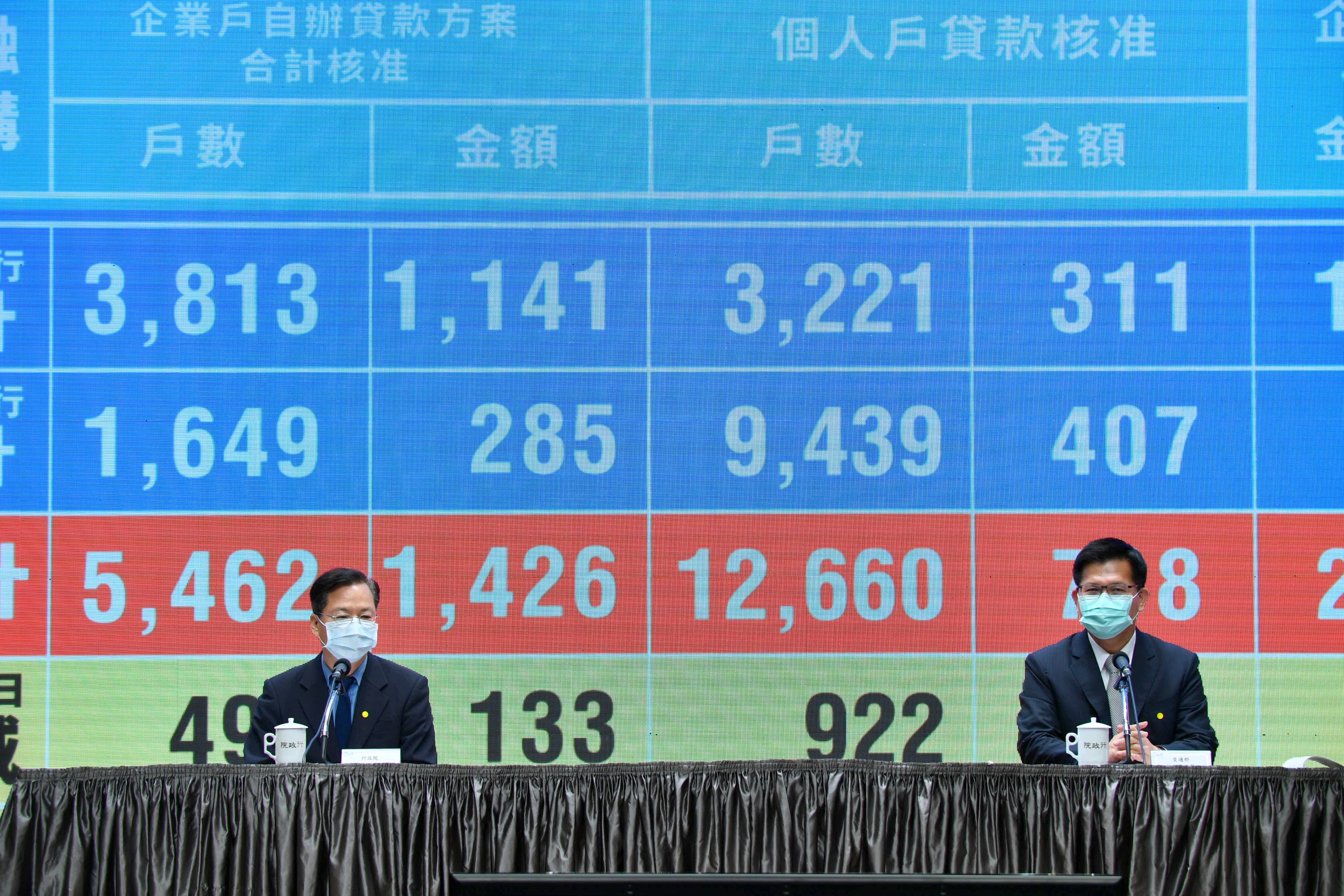 針對紓困貸款辦理情形,龔政委指出,截至昨(22)日為止,本國銀行配合政府辦理紓困貸款,合計受理申請8,910戶、1,523億;已核准5,056戶、816億,較前一日新增核准294億。國內銀行自辦紓困貸款方面,企業戶較前一日新增核准133億,合計達1,426億,在個人戶部分,累計718億。企業戶與個人戶合計2,411億,較前一日新增核准184億。本國銀行配合政府辦理紓困貸款的新增核准金額,已較國內銀行自辦紓困貸款的新增核准金額更快也更多。
