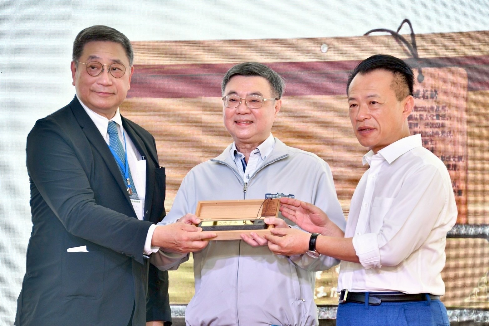 致詞結束後,卓院長從嘉義縣翁章梁縣長、台泥企業團張安平董事長手中,受贈由鹿草焚化爐爐床加工製成,印有「大成若缺」之文鎮,象徵荷苞嶼綠色永續園區生生不息,未來將持續守護在地環境。隨後,卓院長率同與會貴賓啟動開幕儀式,包含環境部彭啓明部長、行政院雲嘉南區聯合服務中心李碧菁副執行長、蔡易餘立委、行政院張子敬前政務委員等均出席今日開幕儀式。