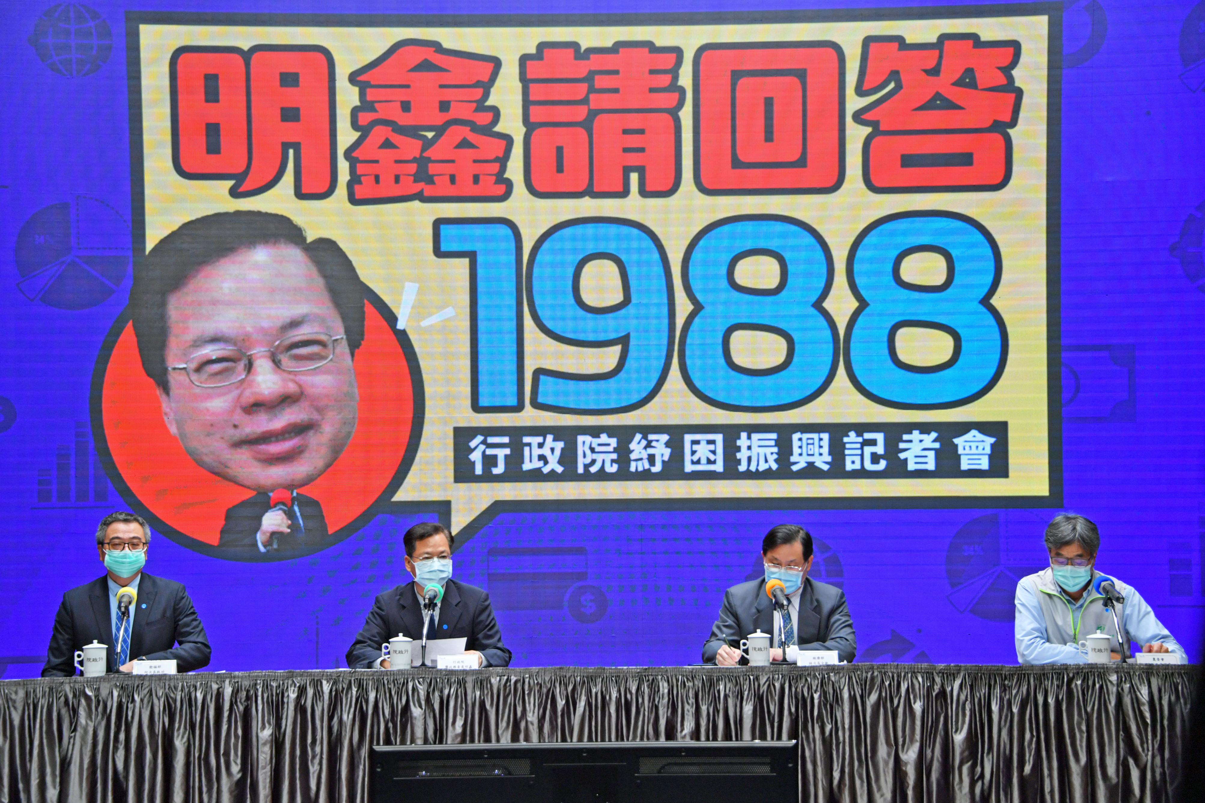 行政院政務委員龔明鑫今(20)日邀集經濟部次長林全能、農委會副主委陳駿季、衛福部次長何啟功,召開行政院紓困振興方案「民生物資盤點」記者會。龔政委表示,蘇貞昌院長強調紓困原則為「企業不能倒、就業不能失,物流不能停,金流不能斷」,政府透過金流與現金補貼方案,守護台灣企業及1,100多萬的就業人口,以支撐經濟發展。供應鏈與民生物資也要穩固,所謂「人在江湖走,物資也要有」,政府會確保基本物資的充份足夠、物價穩定,讓民眾維持正常生活。