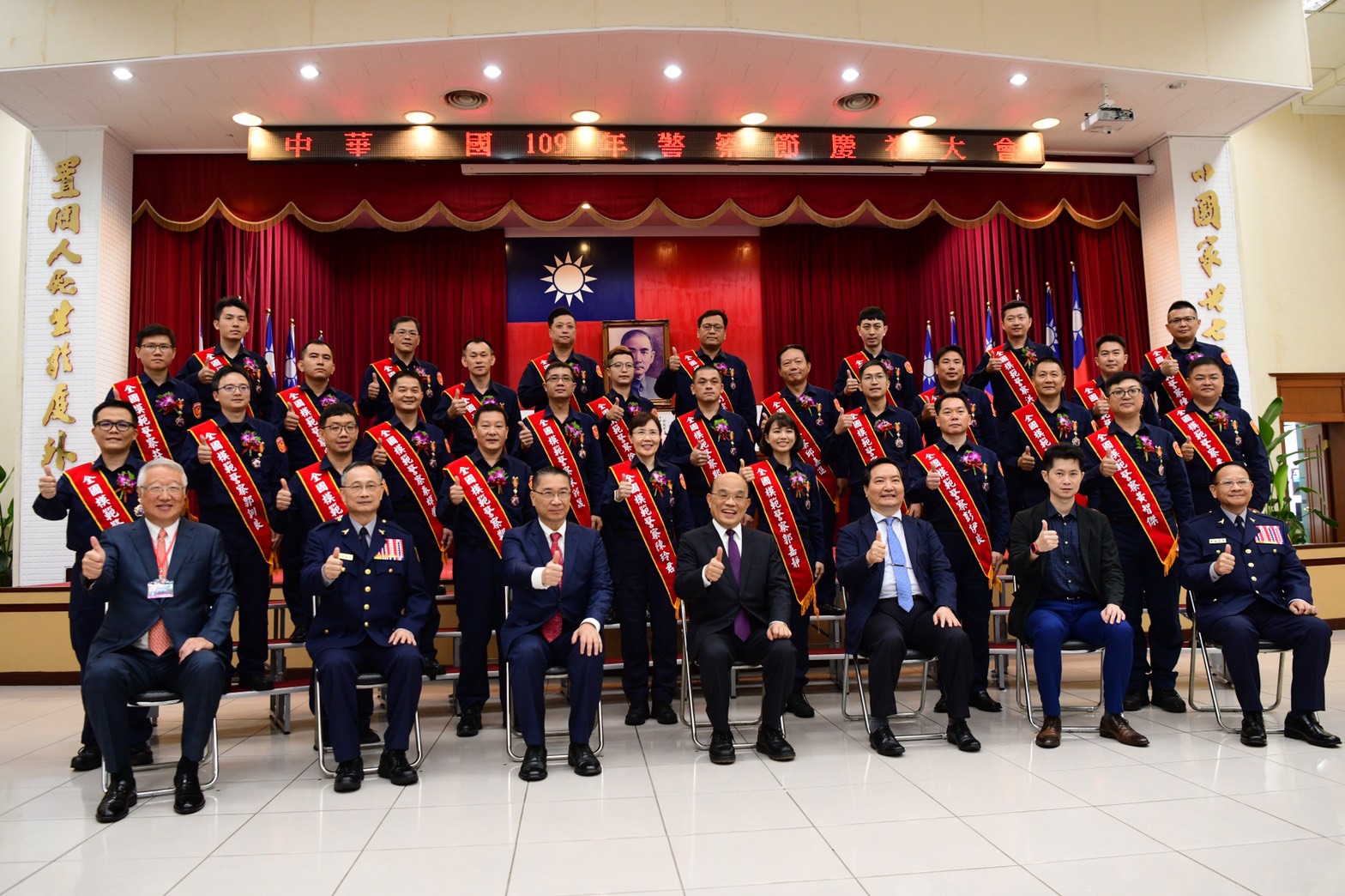 行政院長蘇貞昌今(15)日出席「109年警察節慶祝大會」時表示,他要向全體警察同仁及其家屬表示敬意和感謝,也指示內政部及警政署若有不足之處,該修法就修法,該增加裝備就增加裝備,要給予警察同仁最大的支持。院長強調,警察的工作攸關防疫、治安維護,到國家的健全運作等,關係政府能不能保護人民、公權力能不能貫徹,希望大家加油!