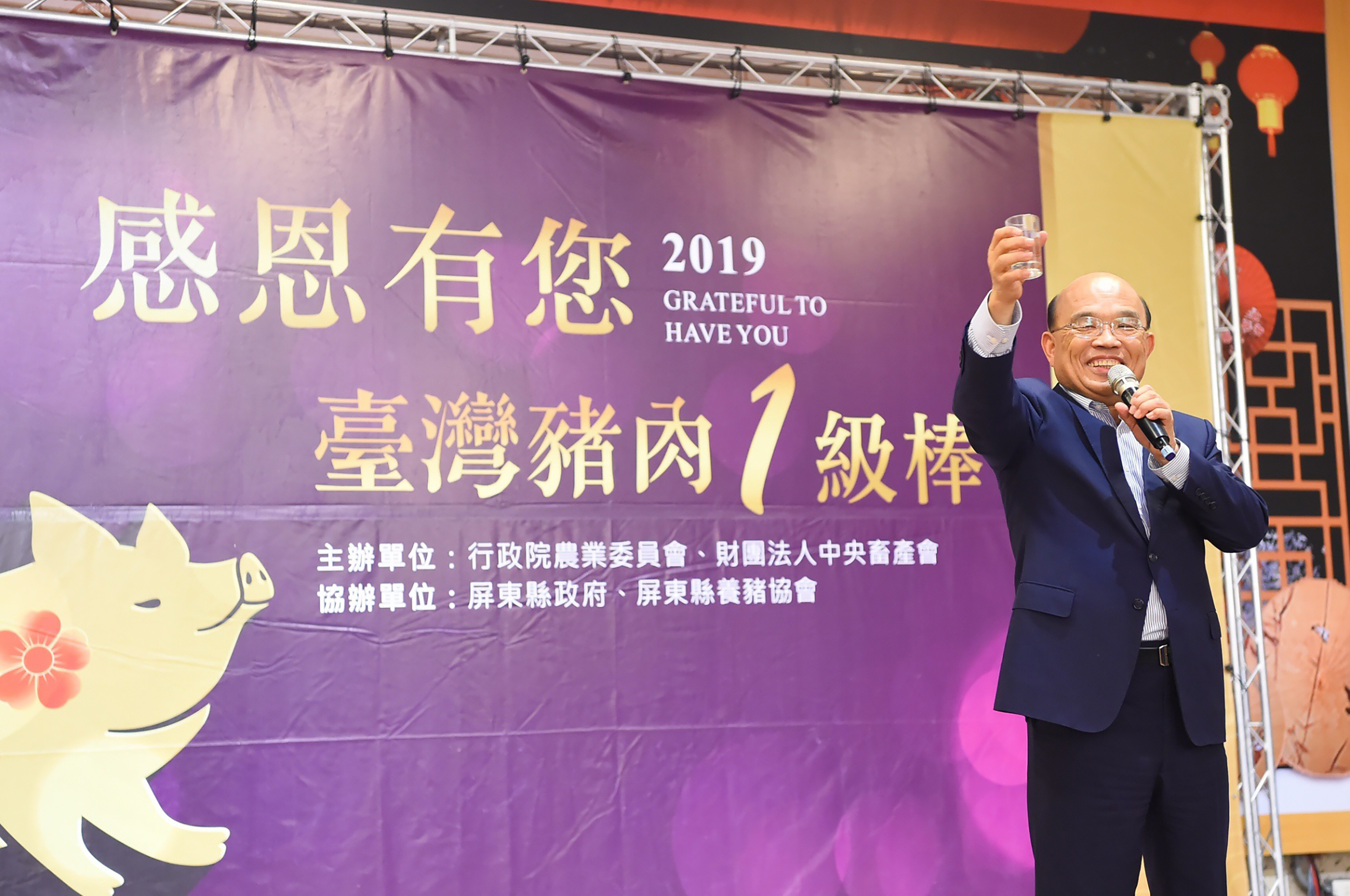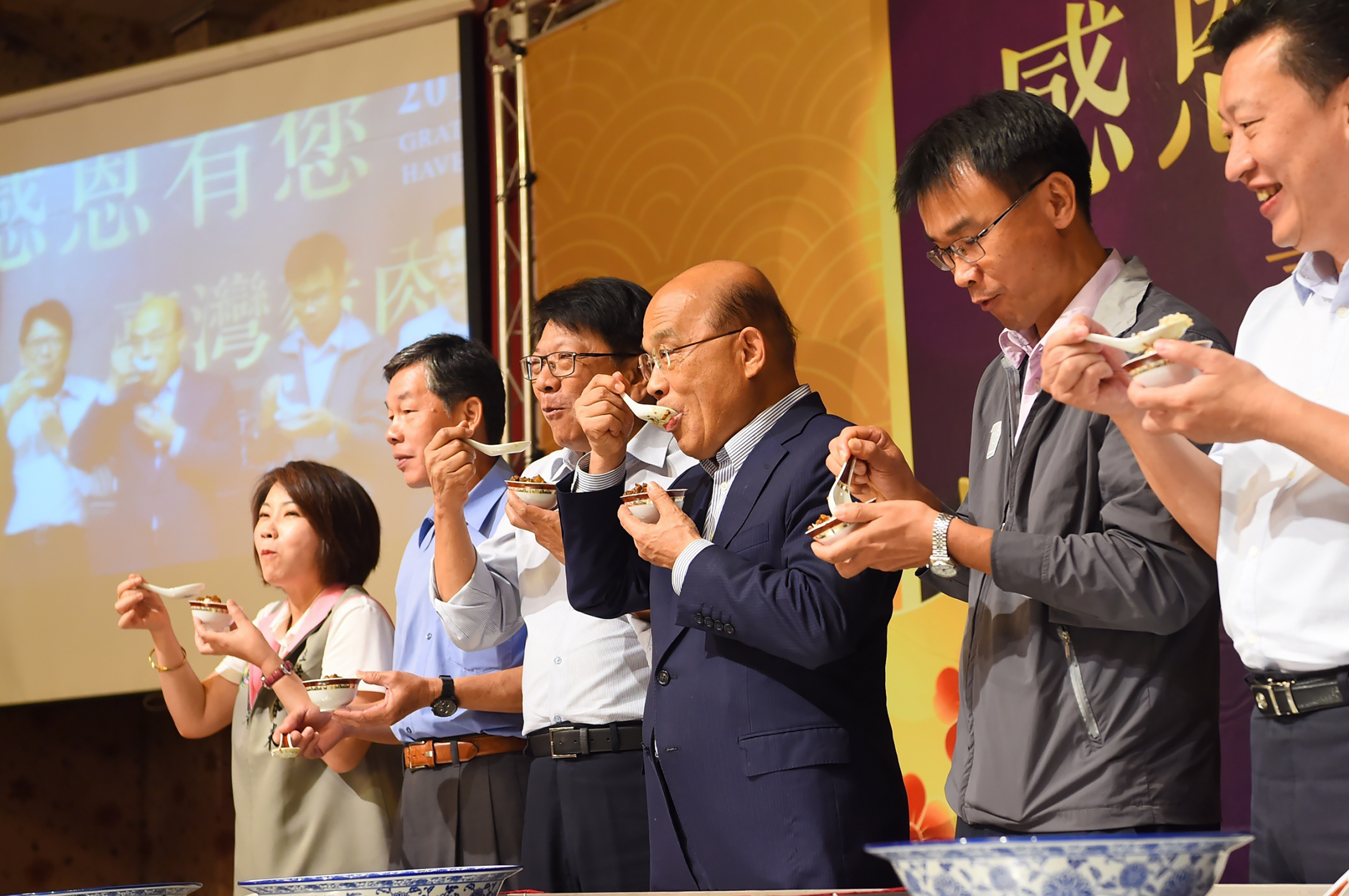 行政院長蘇貞昌今(17)日率中央14位部會首長出席「感恩有您~台灣豬肉一級棒」活動,共同向所有辛苦的養豬農民鞠躬敬禮,表達誠心感謝。尤其中秋佳節將至,蘇院長表示,若不是大家一起努力,端午節就沒有肉粽,......【詳全文】