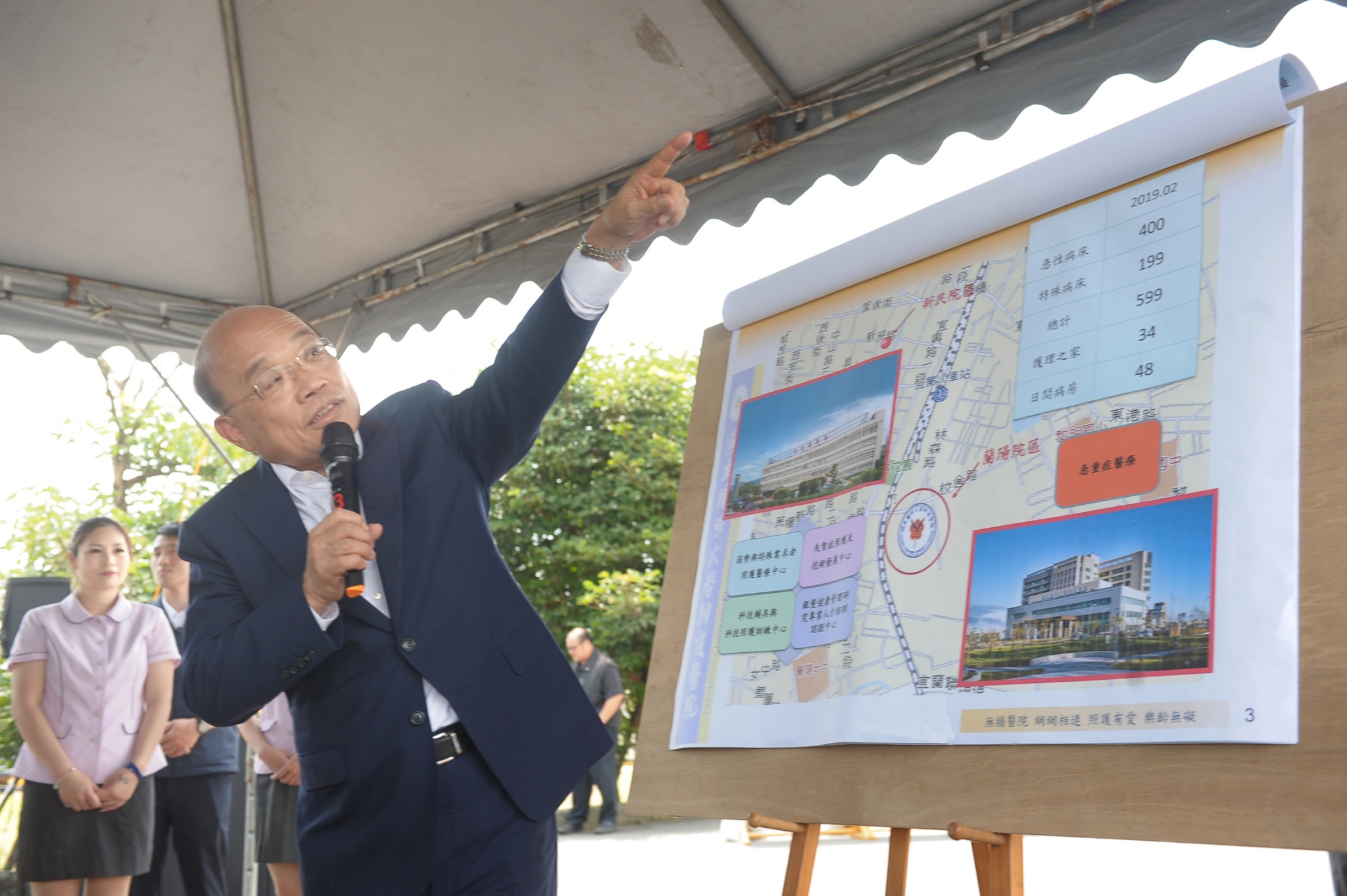 行政院長蘇貞昌今(14)日視察「國立陽明大學附設醫院蘭陽院區擴建計畫」,宣布核定陽明醫院蘭陽院區的二期工程擴建計畫。蘇院長也視察「茅仔寮抽水站及引水渠道新建工程」,期盼儘量趕在明(109)年汛期前開始......【詳全文】