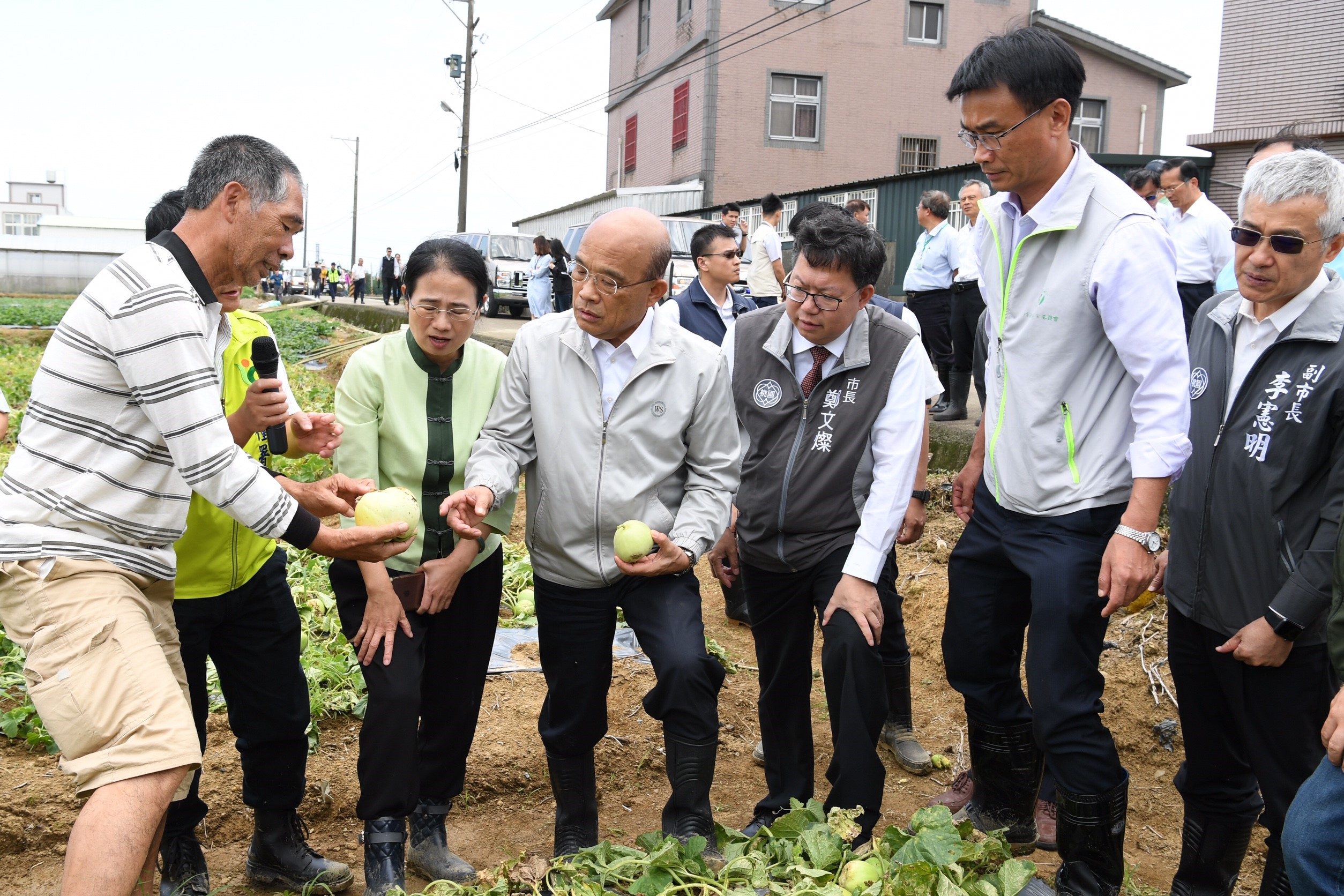 行政院長蘇貞昌今(21)日訪視桃園市新屋區、觀音區五月豪雨瓜果作物災損情形時表示,昨(20)日的豪大雨造成即將採收的瓜果作物因「水傷」無法販售,政府將從速、從寬、從優給予受災農民現金補助,以進行整地復......【詳全文】