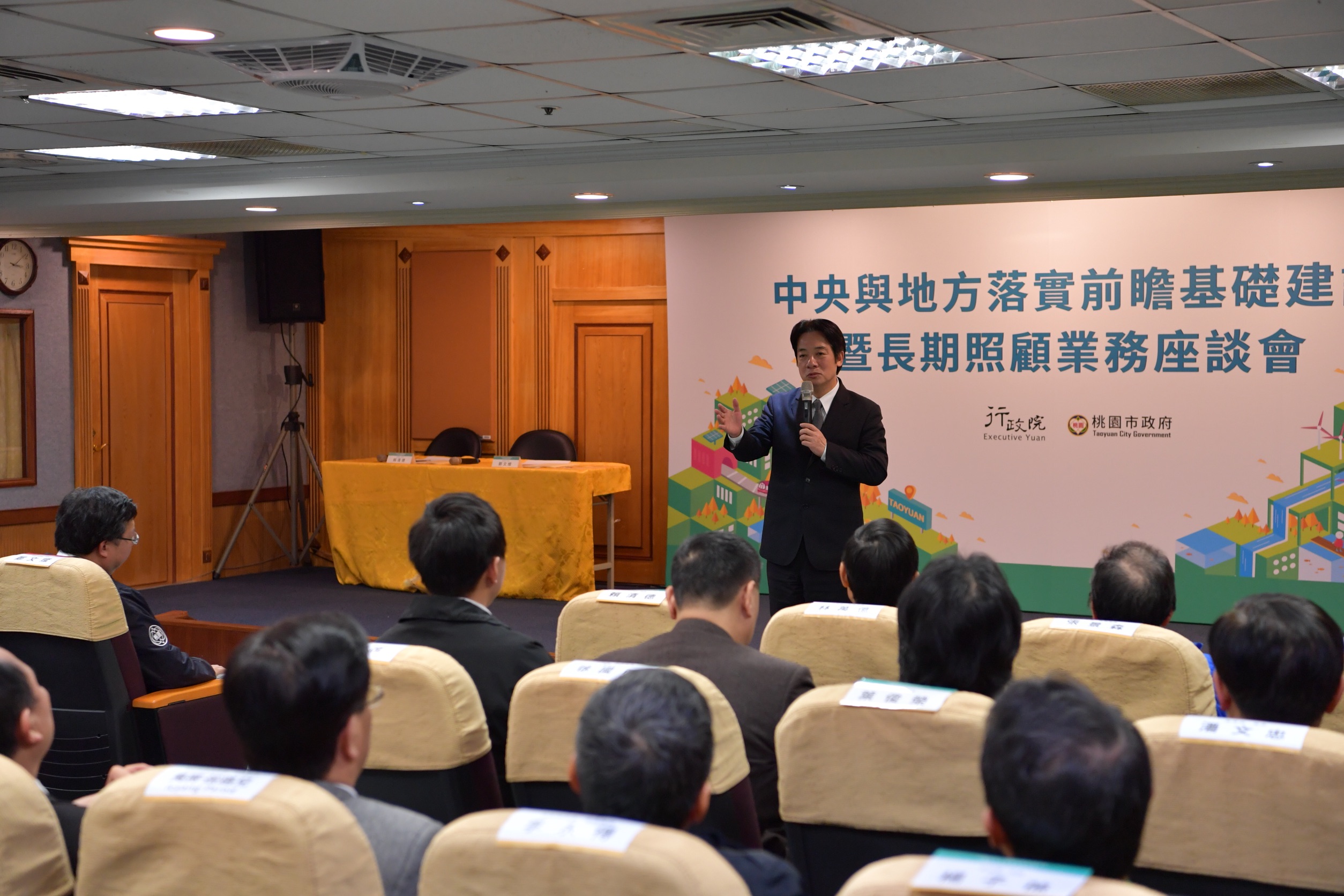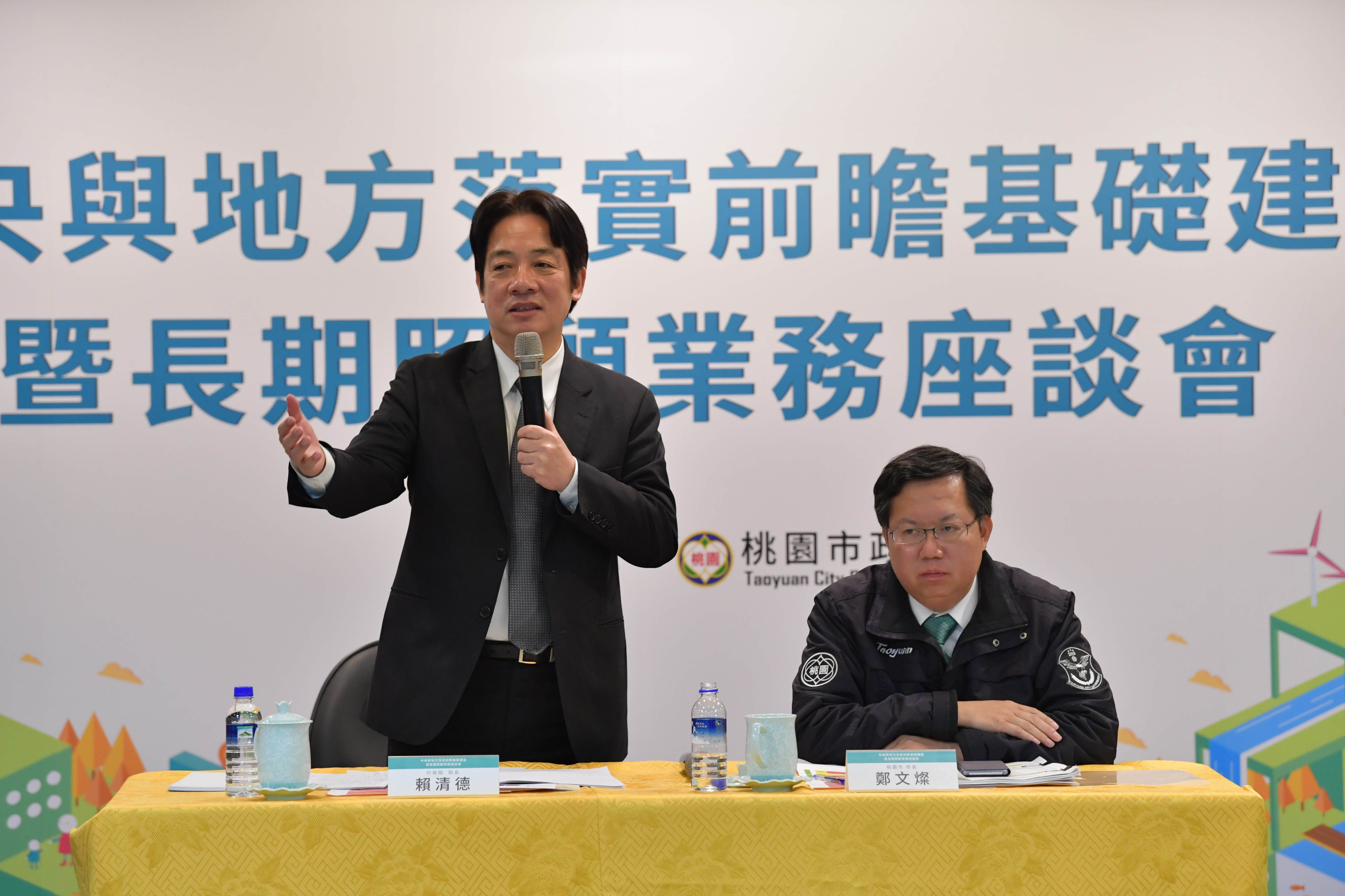 行政院長賴清德今(13)日率行政團隊至桃園市出席「中央與地方落實前瞻基礎建設暨長期照顧業務座談會」時表示,此行是為落實蔡英文總統「前瞻基礎建設計畫」與「長照2.0」兩大政策。桃園市在鄭文燦市長、市府團......【詳全文】