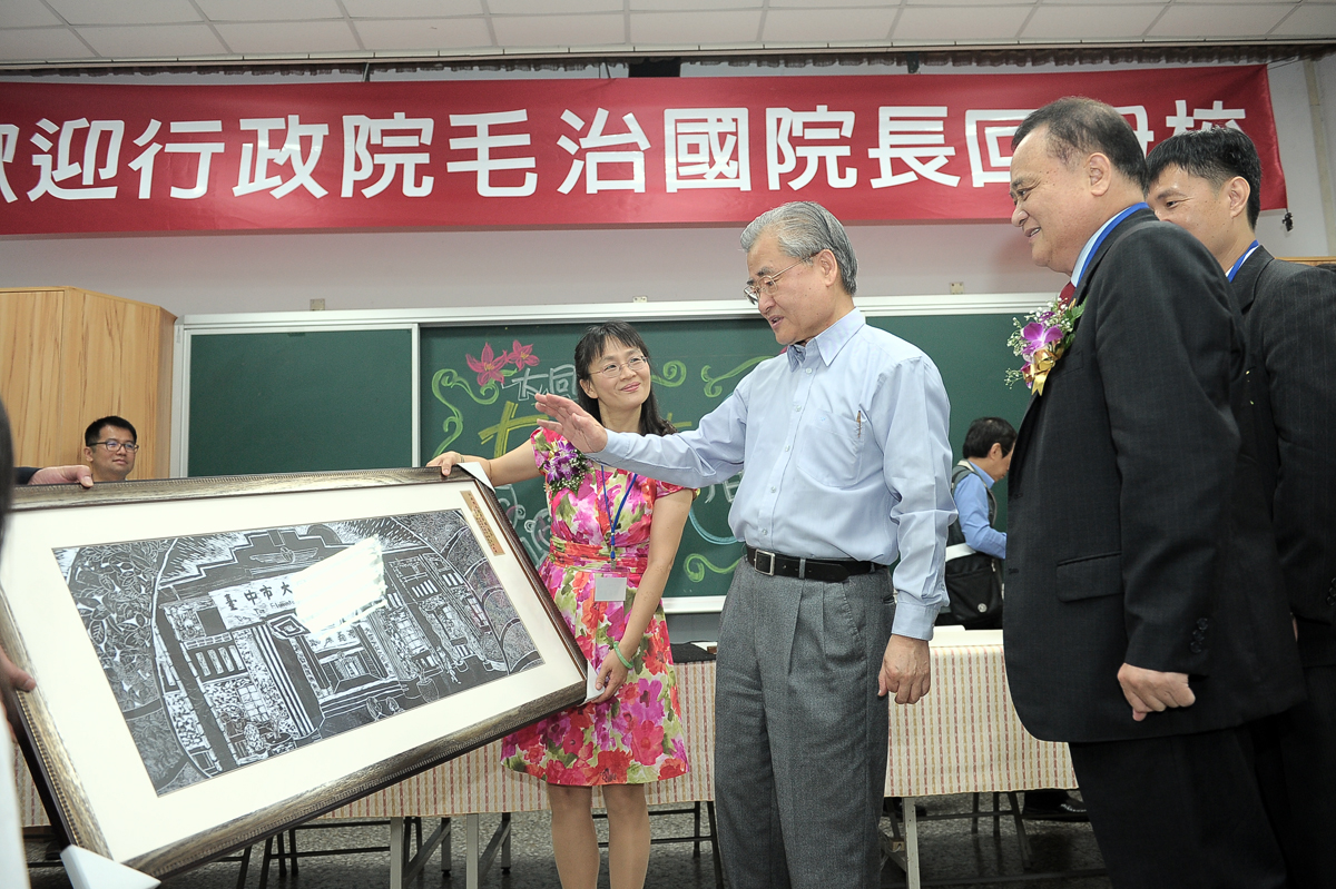 受到母校臺中市大同國小林文芸同學來信的熱情邀請,行政院長毛治國今(8)日以校友身分回到學校,並引用愛因斯坦「想像比知識更重要,因為知識是有限的,而想像卻是無限的」的話,鼓勵所有學弟妹都能在學校中開心的......【詳全文】