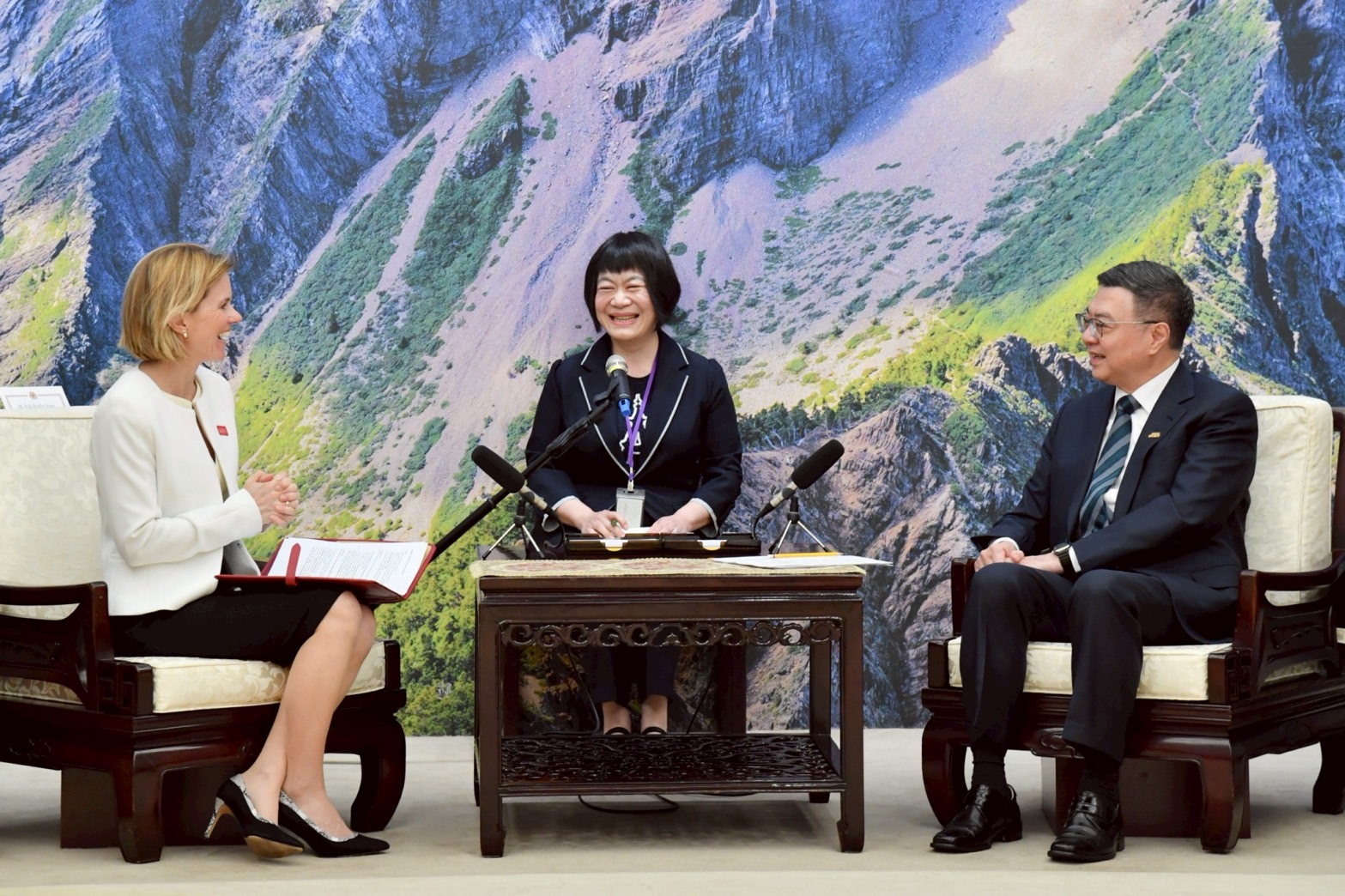 訪賓一行由外交部吳志中次長陪同,前來行政院拜會卓院長,行政院龔明鑫秘書長、楊珍妮政委、李慧芝發言人及經濟部江文若次長也在座。