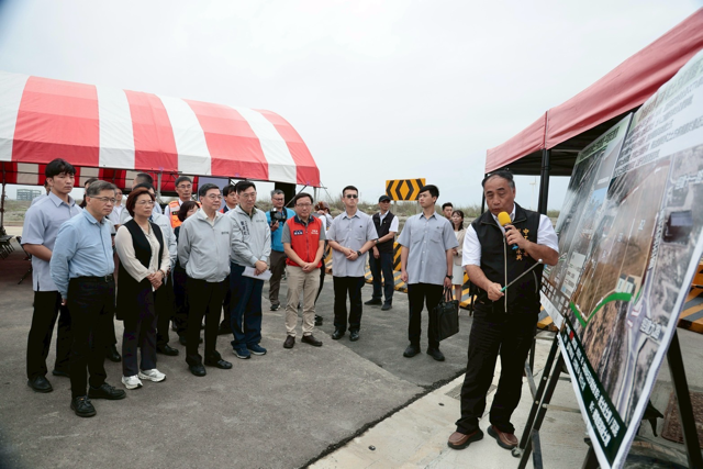 卓院長表示,為協助中部地區土石方去化,感謝內政部、經濟部及彰化縣政府通力合作,由經濟部提供彰濱產業園區36公頃土地提供予內政部設置彰濱崙尾土石方暫置場,目前國土署已完成暫置場統包工程發包作業,正在進行整地工程,最快5月可啟用收土服務,未來暫置量可達144萬立方公尺。此外,臺灣港務公司自9月份開始將在臺中港收容中部地區土方,增加的土方收容量從600萬提高至1,300萬立方公尺,未來彰濱崙尾暫置場也能夠進一步銜接臺中港去化作業。