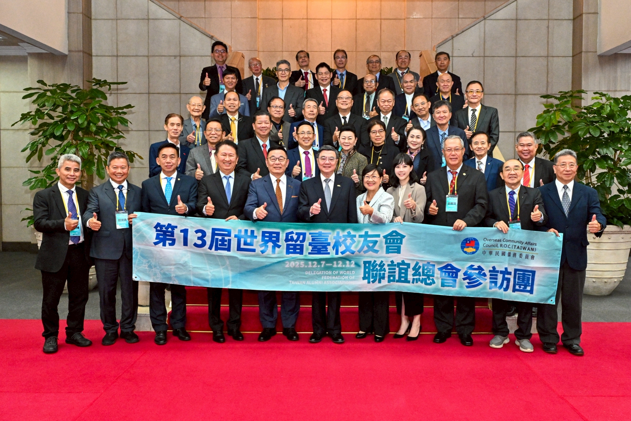 訪團一行由林齊國總會長率領,僑務委員會徐佳青委員長陪同,前來行政院拜會卓院長,行政院李慧芝發言人也在座。