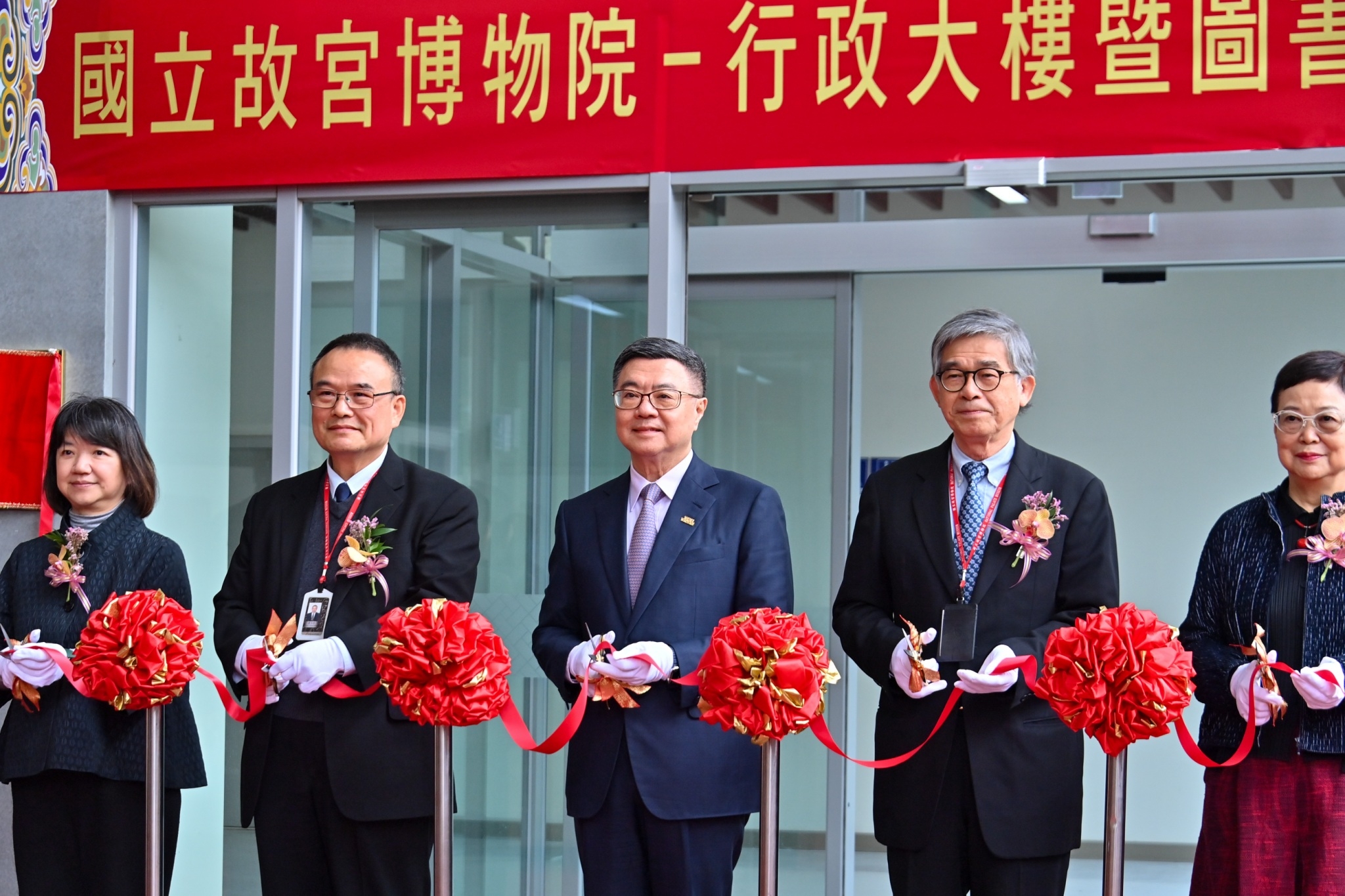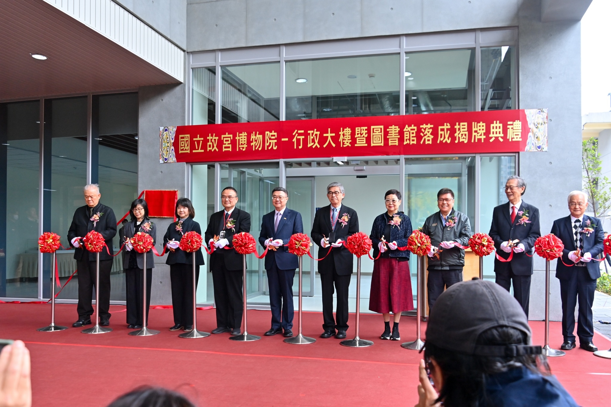 卓院長進一步指出,為提升故宮參觀品質及更好的文物保存,政府編列107.47億元預算於「新故宮計畫」,計畫包括三大主軸,一是故宮北部院區整建和擴建,今日落成的行政大樓及圖書館即為整擴建計畫的一環,行政大樓將成為故宮主要的行政辦公場所;二是故宮國寶文物修復展示館建設,讓文物擁有更好的展示中心;三是博物館群國際觀光網絡系統建置,讓世界看見故宮。