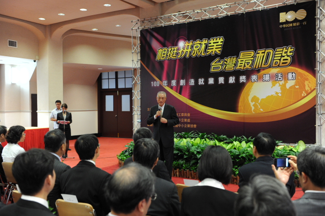 行政院長吳敦義今(6)日出席創造就業貢獻獎表揚活動時表示,今年6、7、8月以來的就業人數有相當成長,8月的失業率下降到4.45%,對照於他2年前就任時的失業高峰期6.13%,剛好下降了1.68%,他感謝所有得獎代表對降低失業率的貢獻,並祝福大家事業一路發,企業壯大之後才能雇用更多員工,讓台灣邁向更公義和諧的社會。