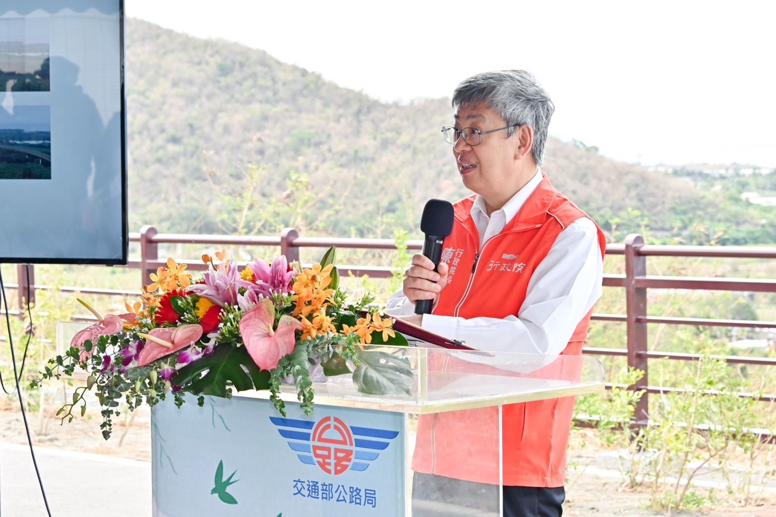 陳院長指出,很高興再次來到屏東縣,並欣見屏東在潘孟安前縣長與周春米縣長積極推動下,各方面發展都令人矚目,讓許多縣市為之驚豔。行政院非常重視屏東的各項發展,尤其農業及觀光是屏東產業的命脈,因此對於地形南北狹長的屏東縣而言,交通要道的打通極為重要。