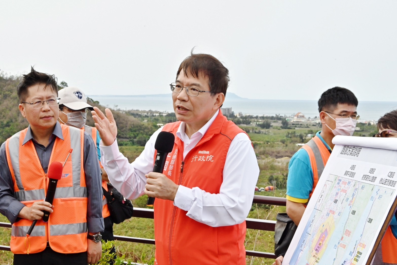 陳院長提到,蘇貞昌前院長任內,大力推動屏鵝公路141公里纜線地下化工程,該工程採分段招標,在眾人齊心努力下,短時間內即順利完工,充分展現蘇前院長「衝、衝、衝」的風格。陳院長也期勉本計畫施工團隊能夠秉持「衝、衝、衝」的精神,儘量縮短相關作業期程,並在未來施工過程中與地方政府充分合作,做好交通維持等工作,讓工程早日完工,實現在地鄉親的盼望,也讓他未來有機會透過屏南快速公路前往屏東鵝鑾鼻遊覽。