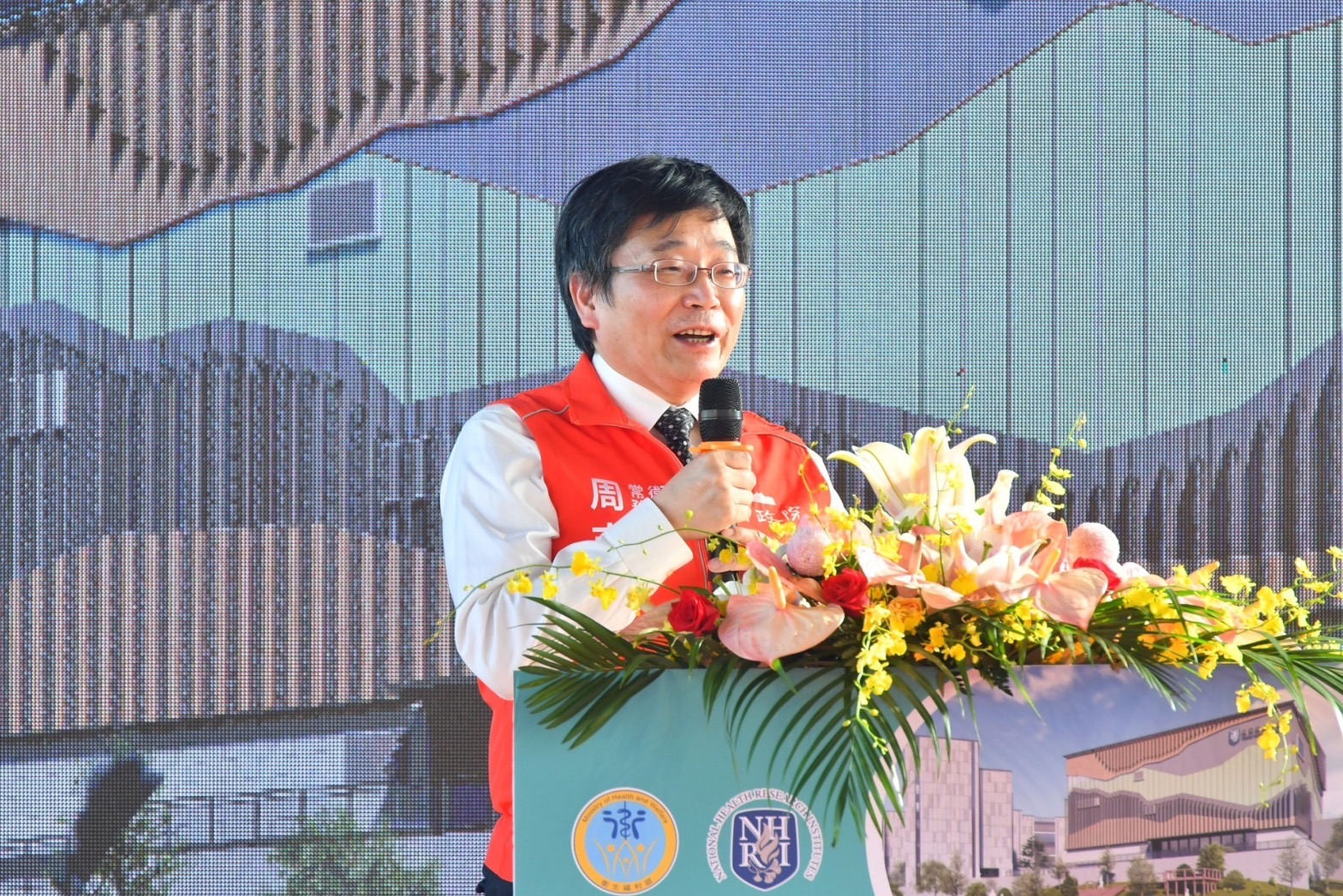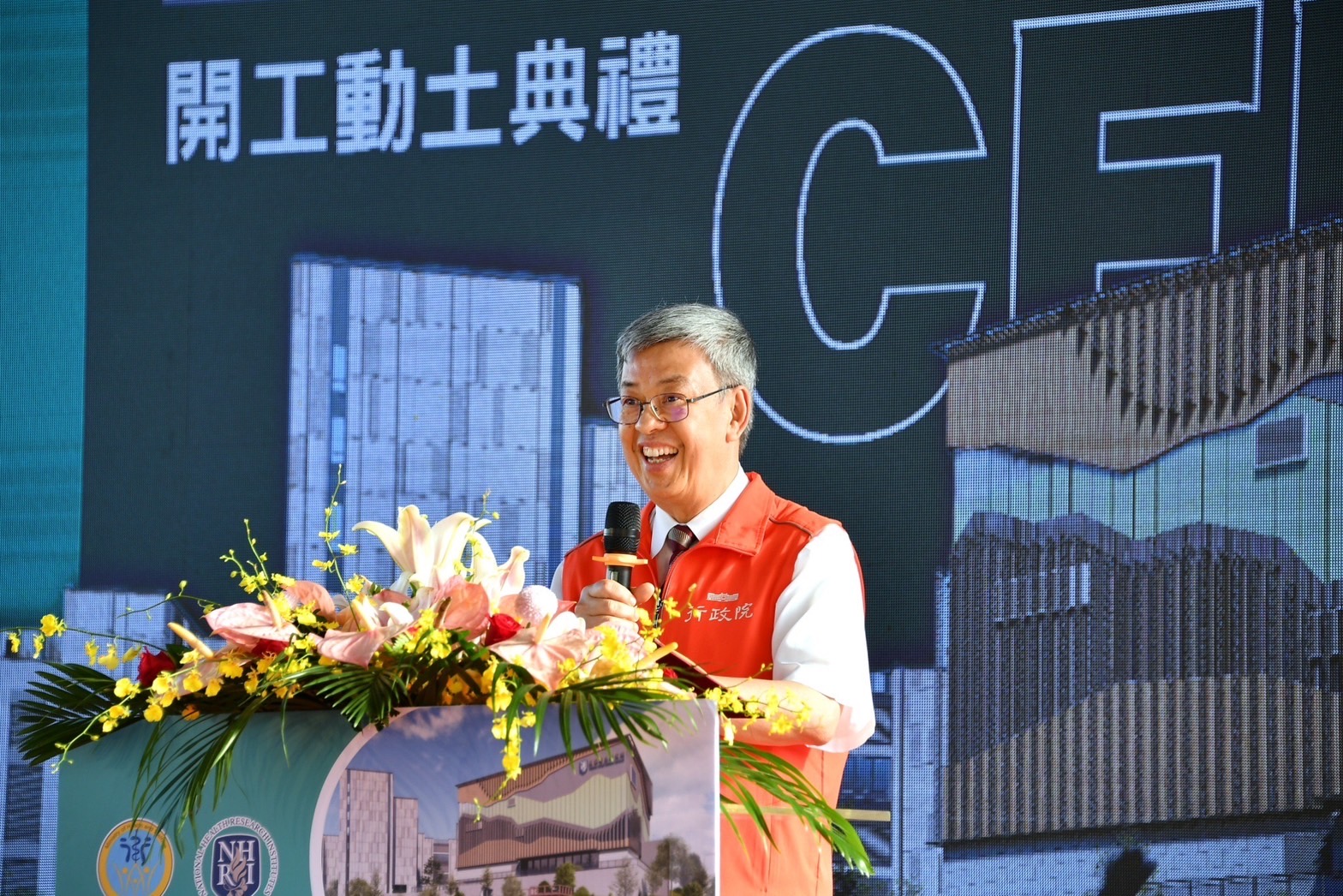 行政院長陳建仁今(12)日前往苗栗縣出席國家衛生研究院「生物製劑擴廠暨戰略平台資源庫興建工程」開工動土典禮時表示,他要感謝行政院蘇貞昌前院長、衛生福利部陳時中前部長、薛瑞元部長、國衛院梁賡義前院長及司徒惠康院長的高瞻遠矚,以及潤泰集團尹衍樑總裁捐贈20億元,使原有規模較小的生物製劑廠能夠持續擴建,也請相關工程團隊一同努力,協助工程如期如質完成,使國衛院相關研究發展更上一層樓,為臺灣疫苗製劑帶來量產的可能,並且帶領公共衛生及防疫方面有更大的進步。