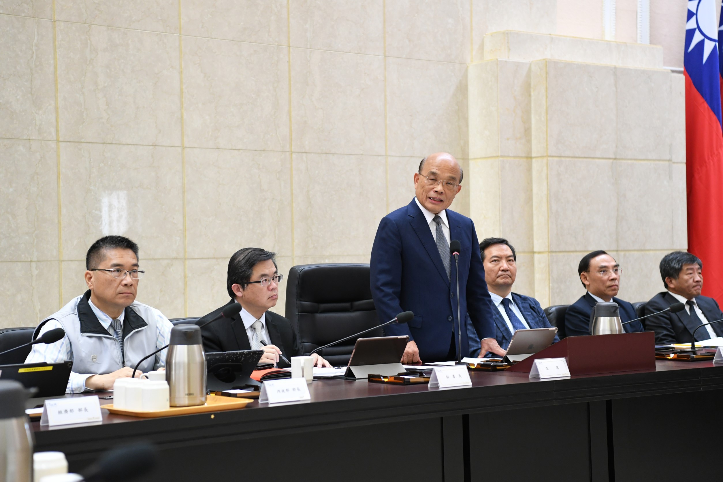 行政院長蘇貞昌今(27)日主持「108年第2次治安會報」,並頒獎表揚第三波安居緝毒專案有功人員及機關。蘇院長表示,他代表政府向各獲獎單位及獲獎人,表達最高敬意與感謝,並肯定高檢署協同檢、警、調、憲、海巡及海關人員,盡心盡力打擊毒品犯罪,成績亮麗備受國人讚許。毒是萬惡之源,唯有將毒品阻絶於境外,溯源斷根,才能保護每一位國人,請相關機關單位持續努力,使民眾安居樂業。